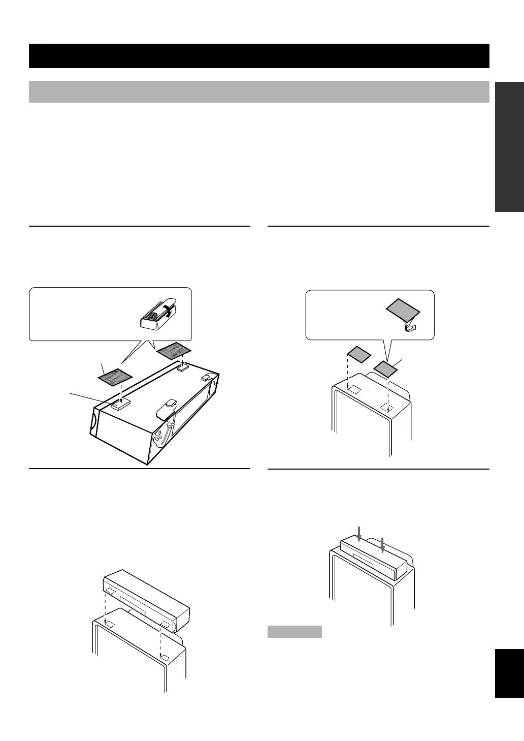 Wanneer u het voorluidspreker-toestel op een TV of ander apparaat installeert, moet u dit door middel van het bijgeleverde