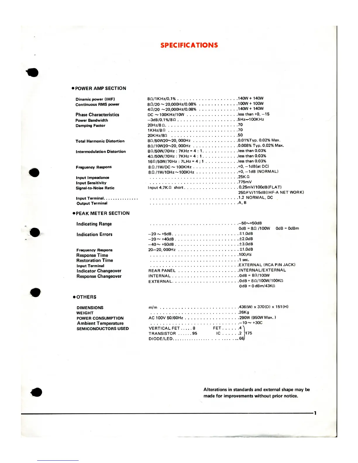 Yamaha B-2 - Specifications; Power Amp Section; Peak Meter Section; Others