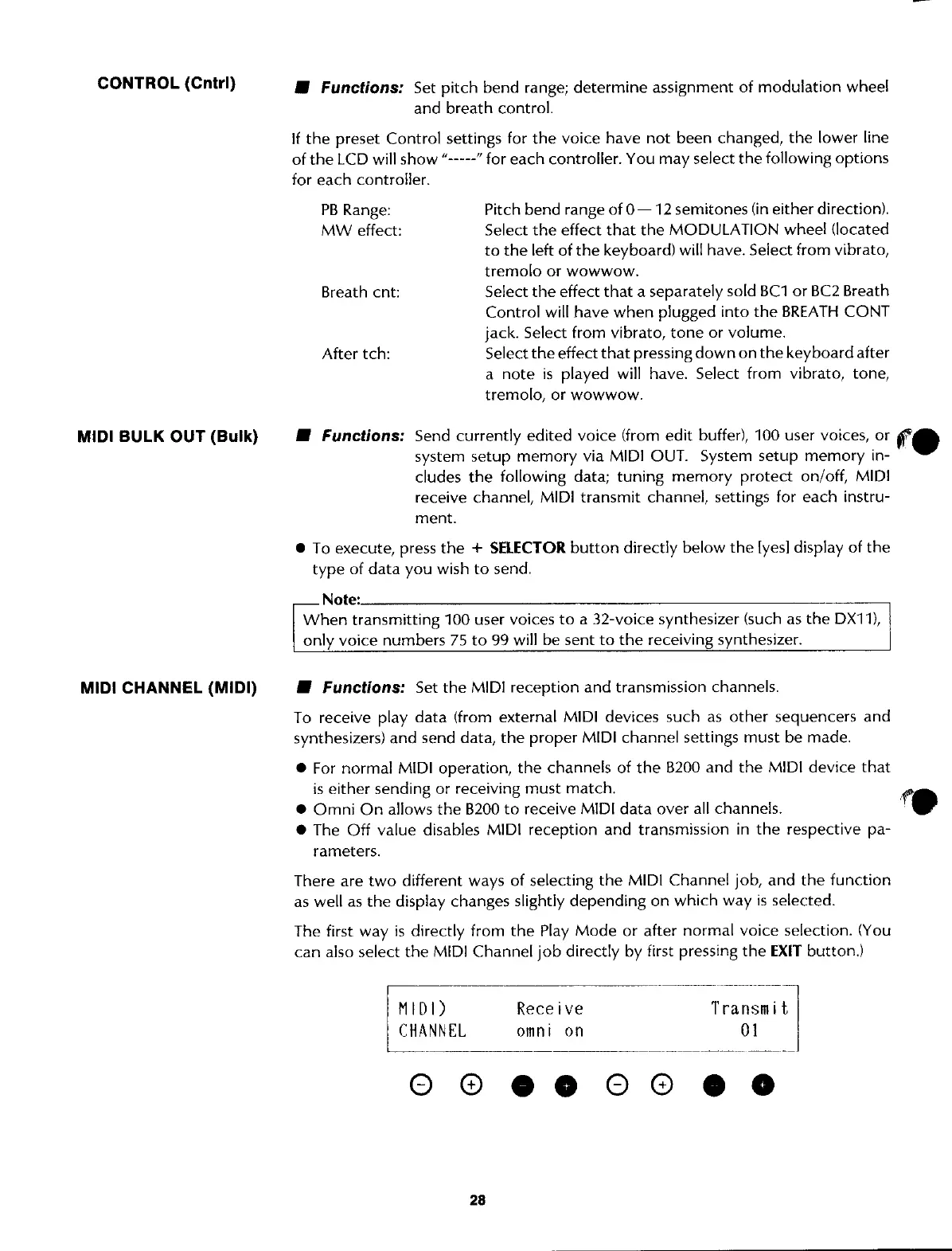 Yamaha B200 - Control (Cntrl); MIDI Bulk out; MIDI Channel