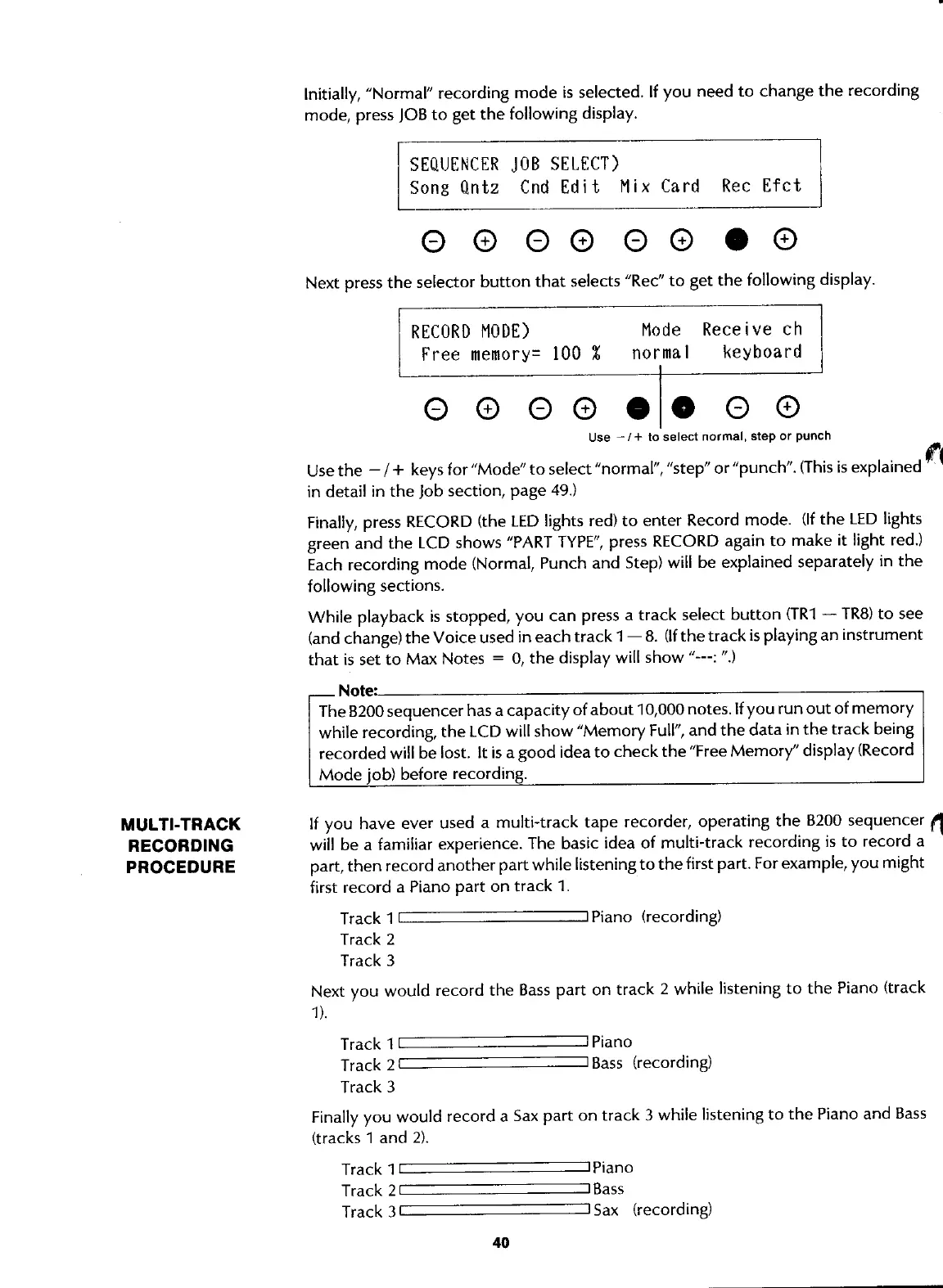 Yamaha B200 - Multi-Track Recording Procedure