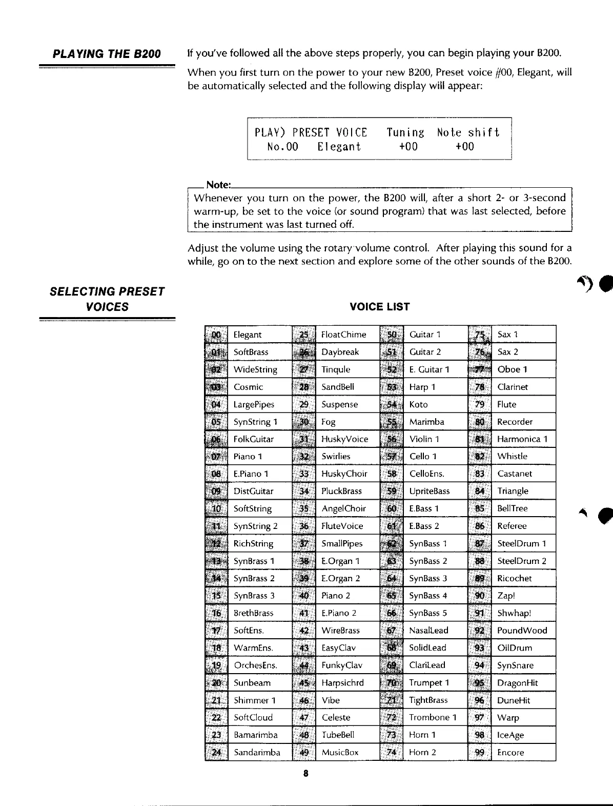 Yamaha B200 - Playing; Selecting Preset Voices
