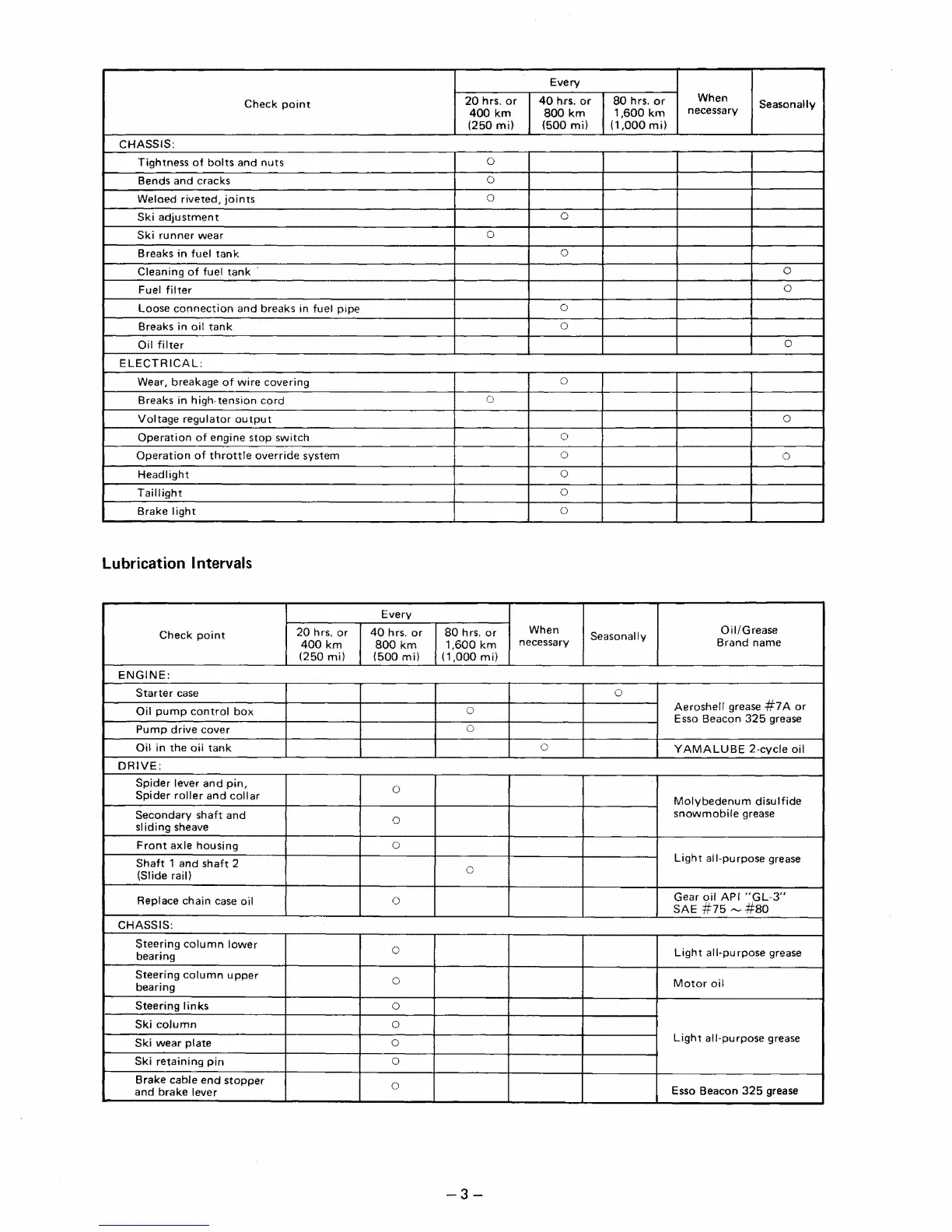 Lubrication Intervals