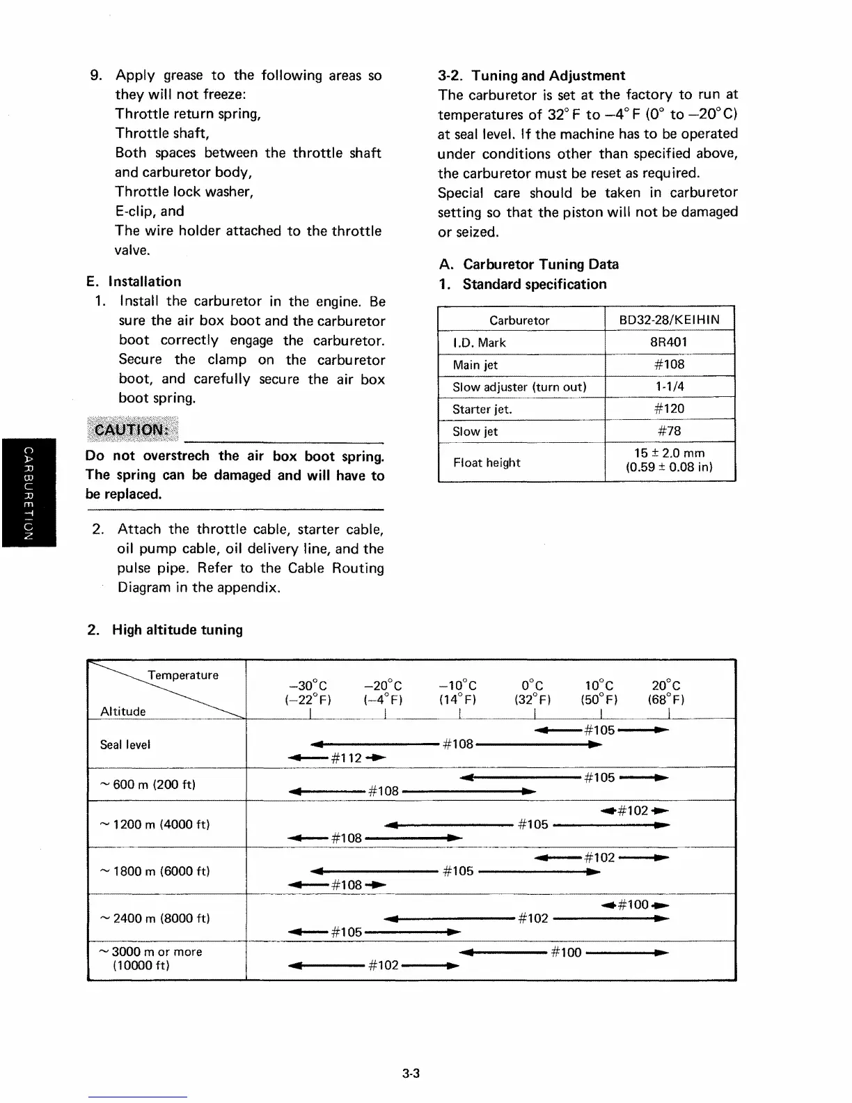 A. Carburetor Tuning Data
