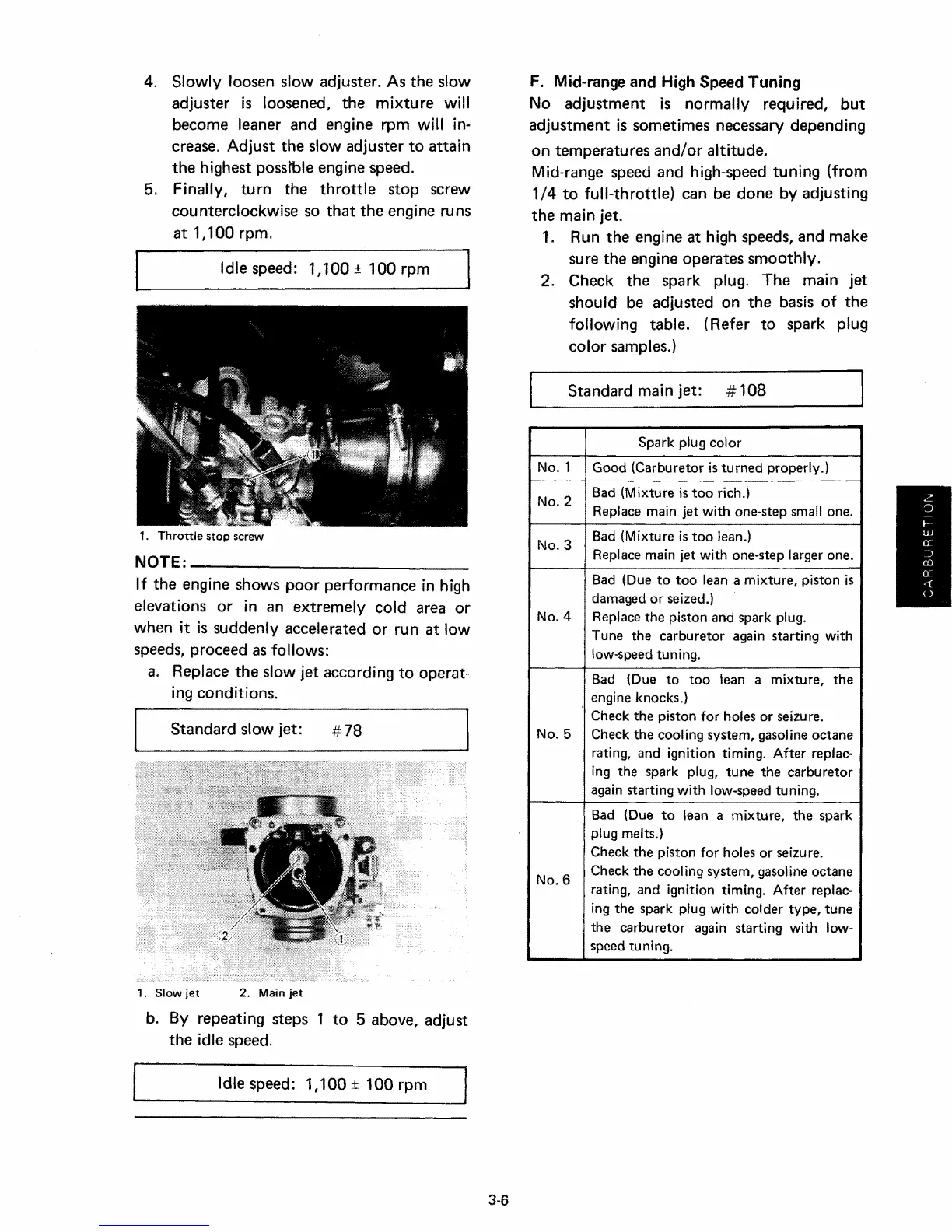 following table. (Refer to spark plug
