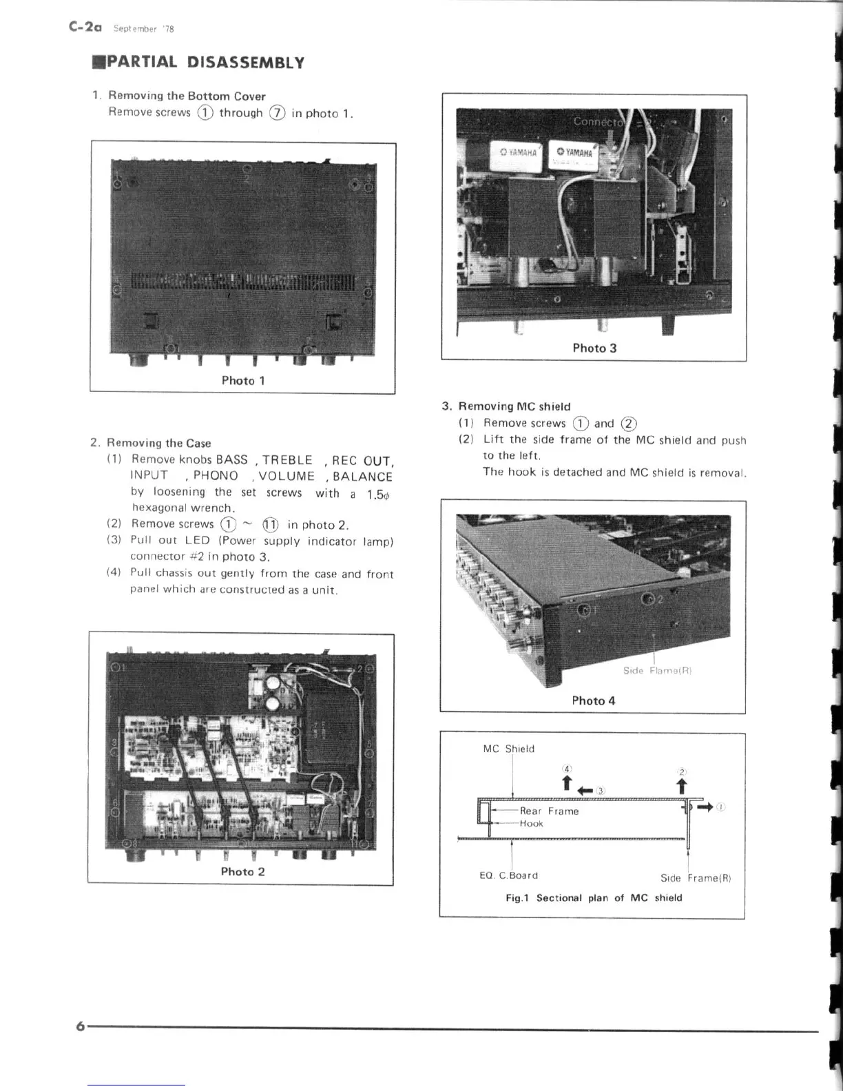 Yamaha C-2a - Partial Disassembly; Removing the Bottom Cover; Removing the Case; Removing MC Shield