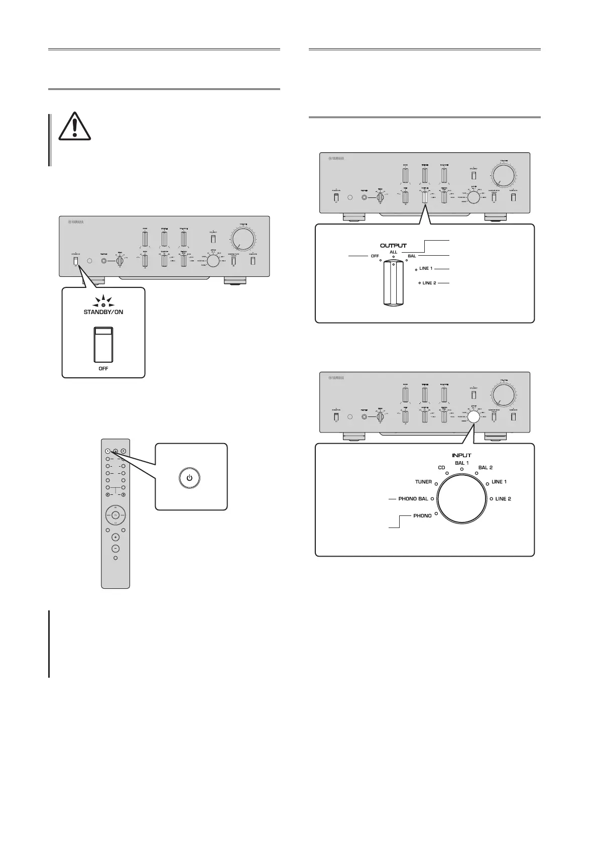 Select a pair of output jacks using the OUTPUT selector.