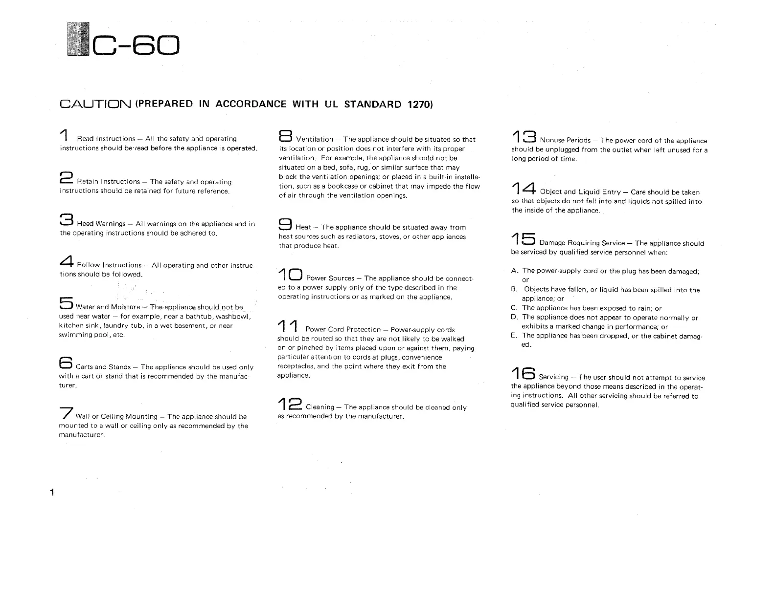 Yamaha C-60 - Safety Precautions - General