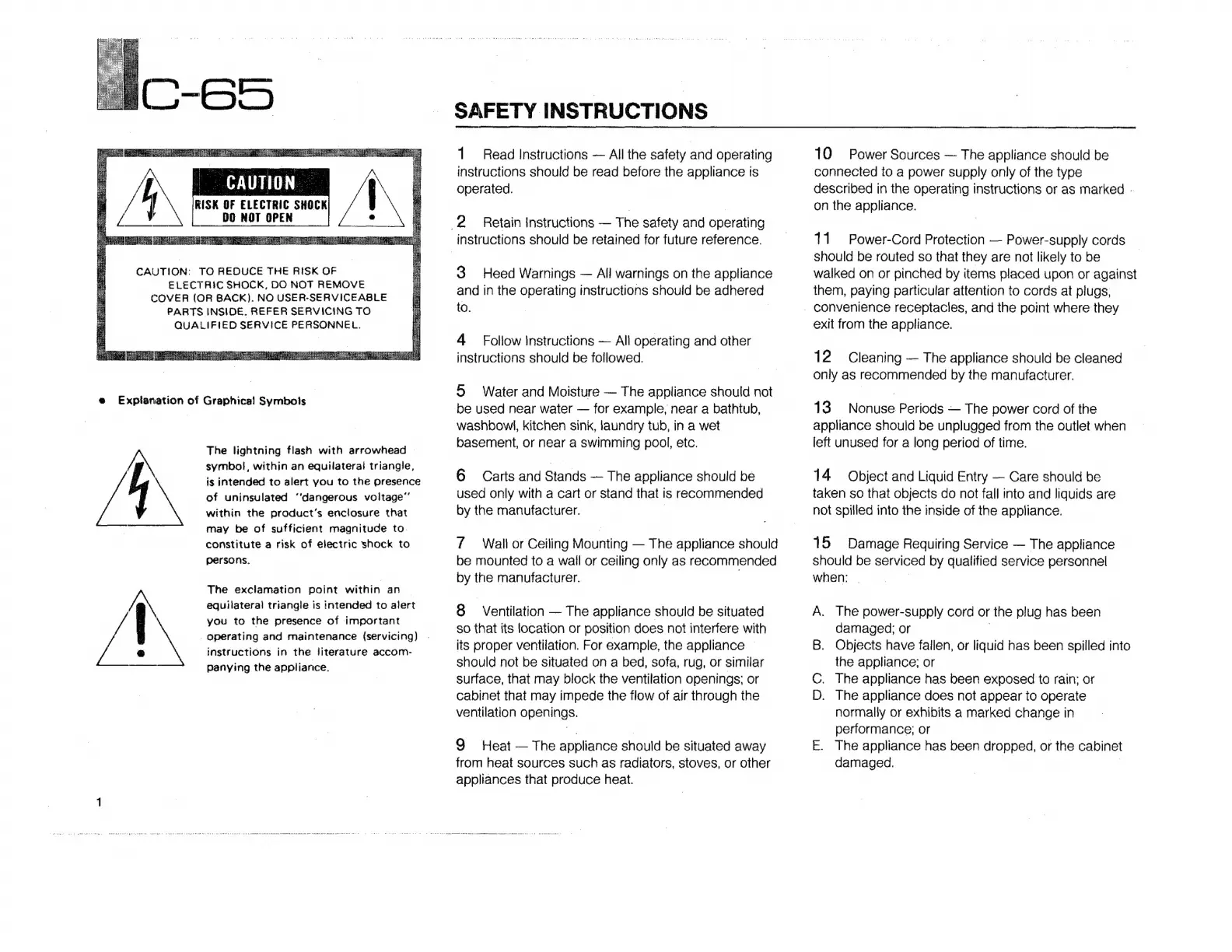 Yamaha C-65 - Safety Instructions; Graphical Symbols Explanation; General Safety Guidelines