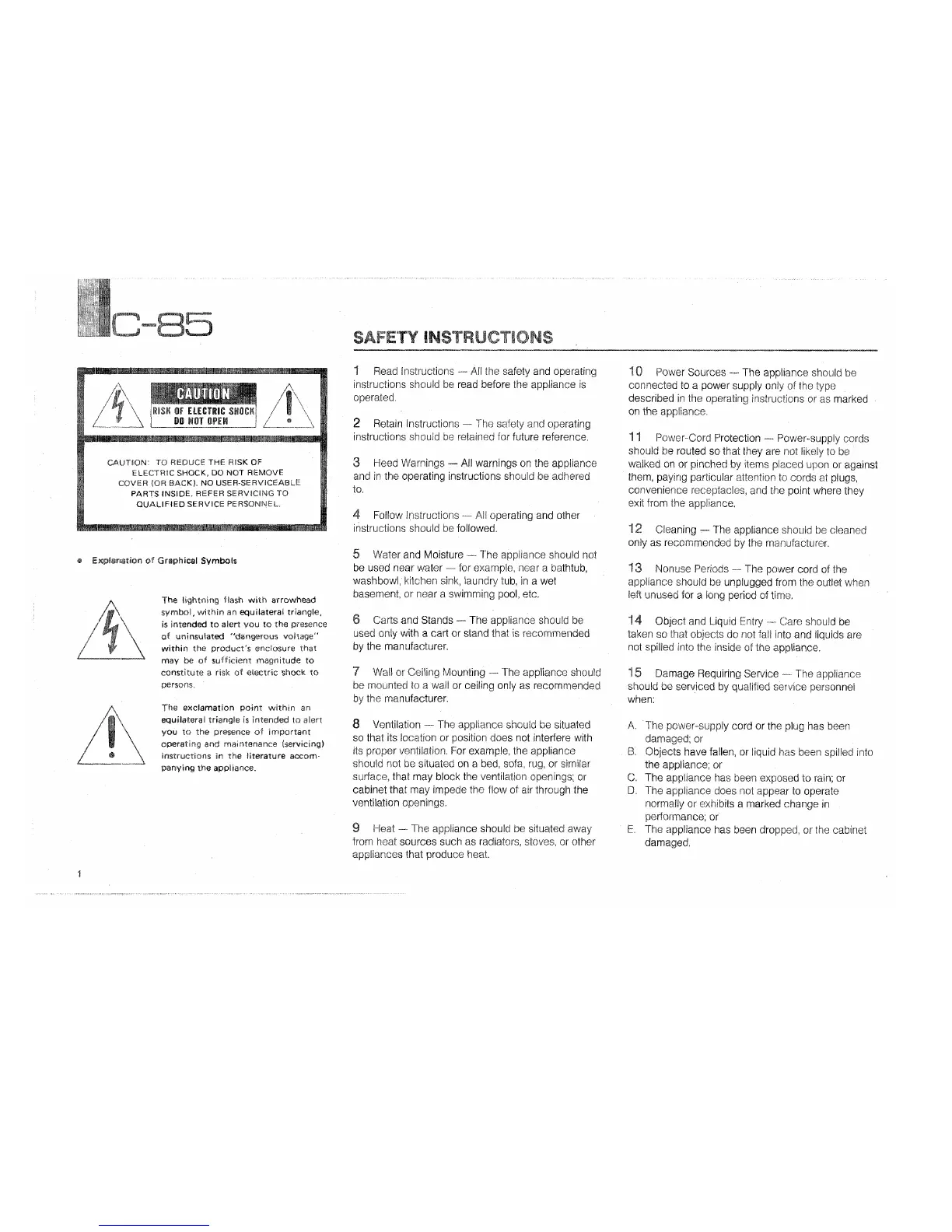 Yamaha C-85 - SAFETY INSTRUCTIONS; Instruction Management; Compliance with Warnings; Usage Environment Precautions