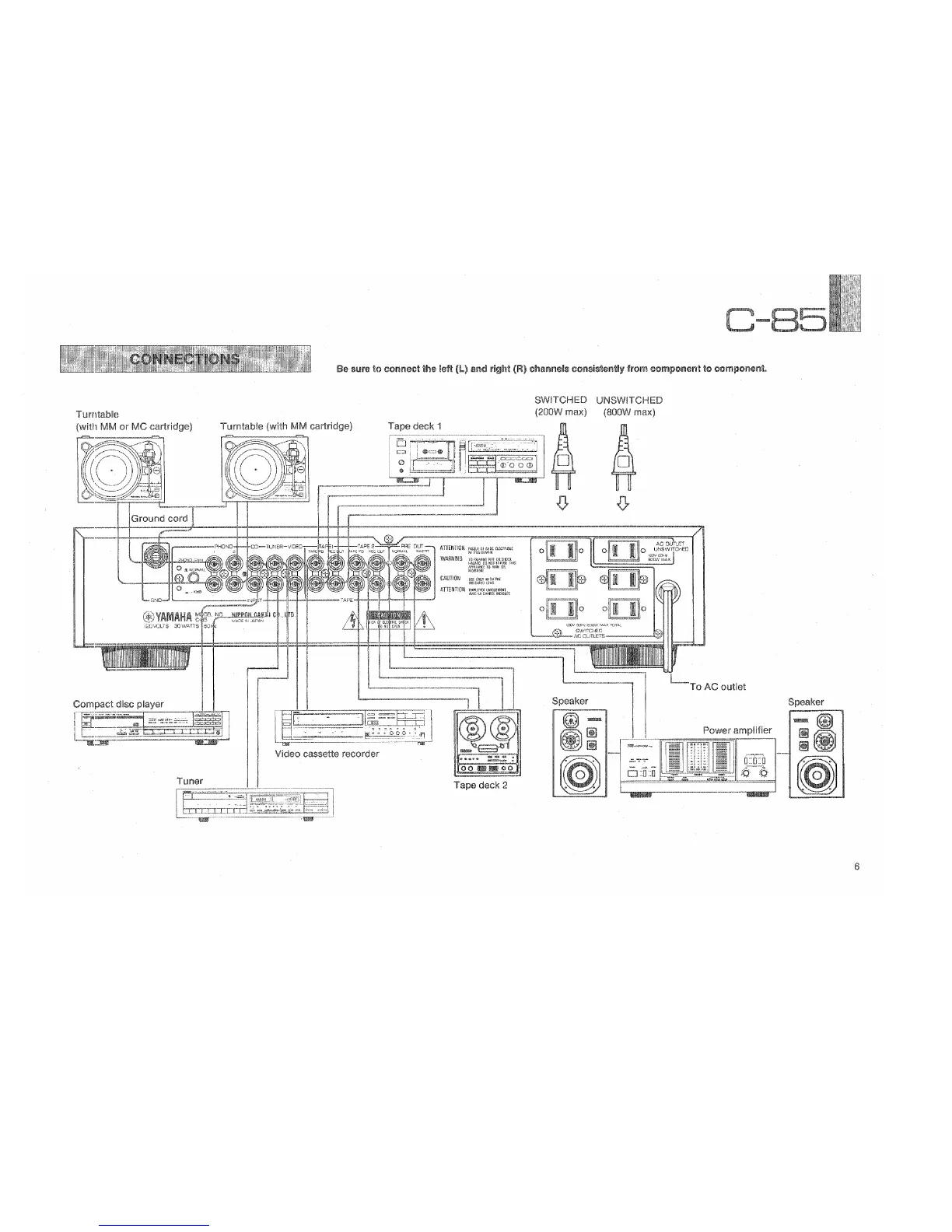 Yamaha C-85 - CONNECTIONS; Turntable Connections; Tape Deck Connections; CD Player and VCR Connections