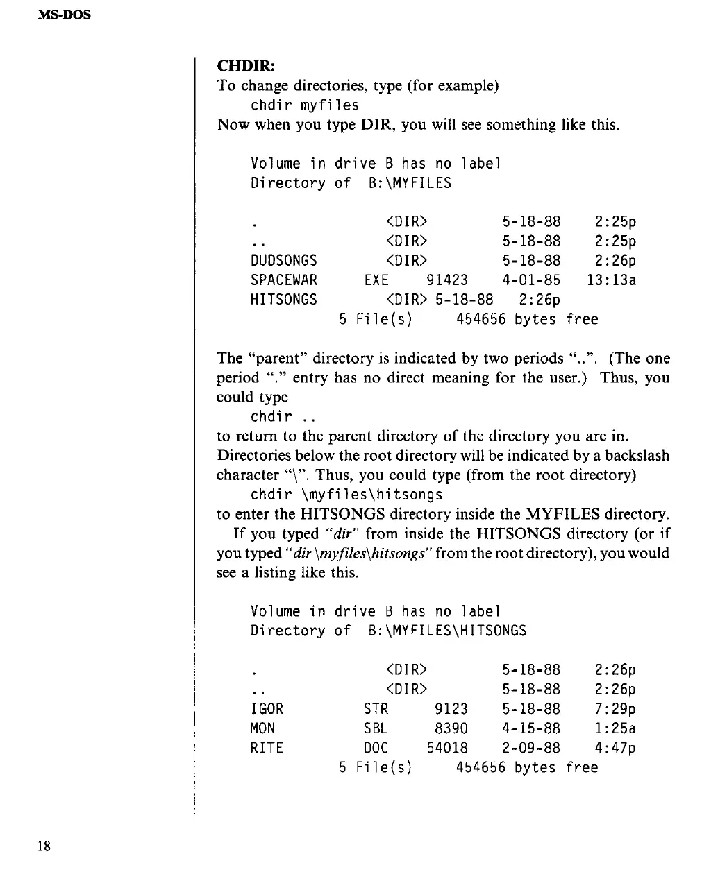 Yamaha C1 - MS-DOS CHDIR Command; MS-DOS MKDIR Command