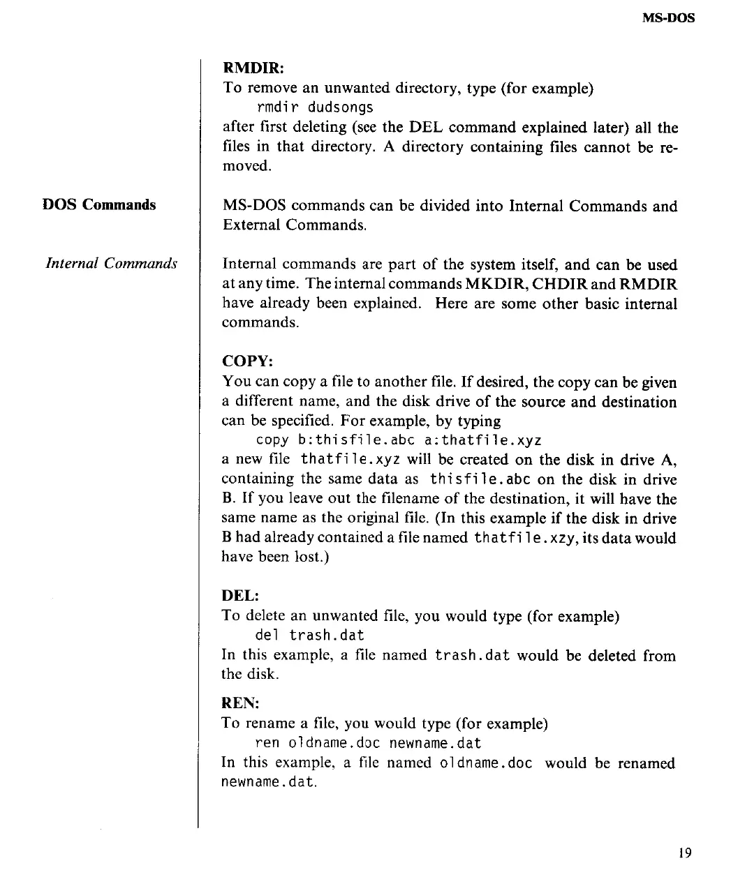 Yamaha C1 - MS-DOS RMDIR Command; MS-DOS COPY Command; MS-DOS DEL Command; MS-DOS REN Command