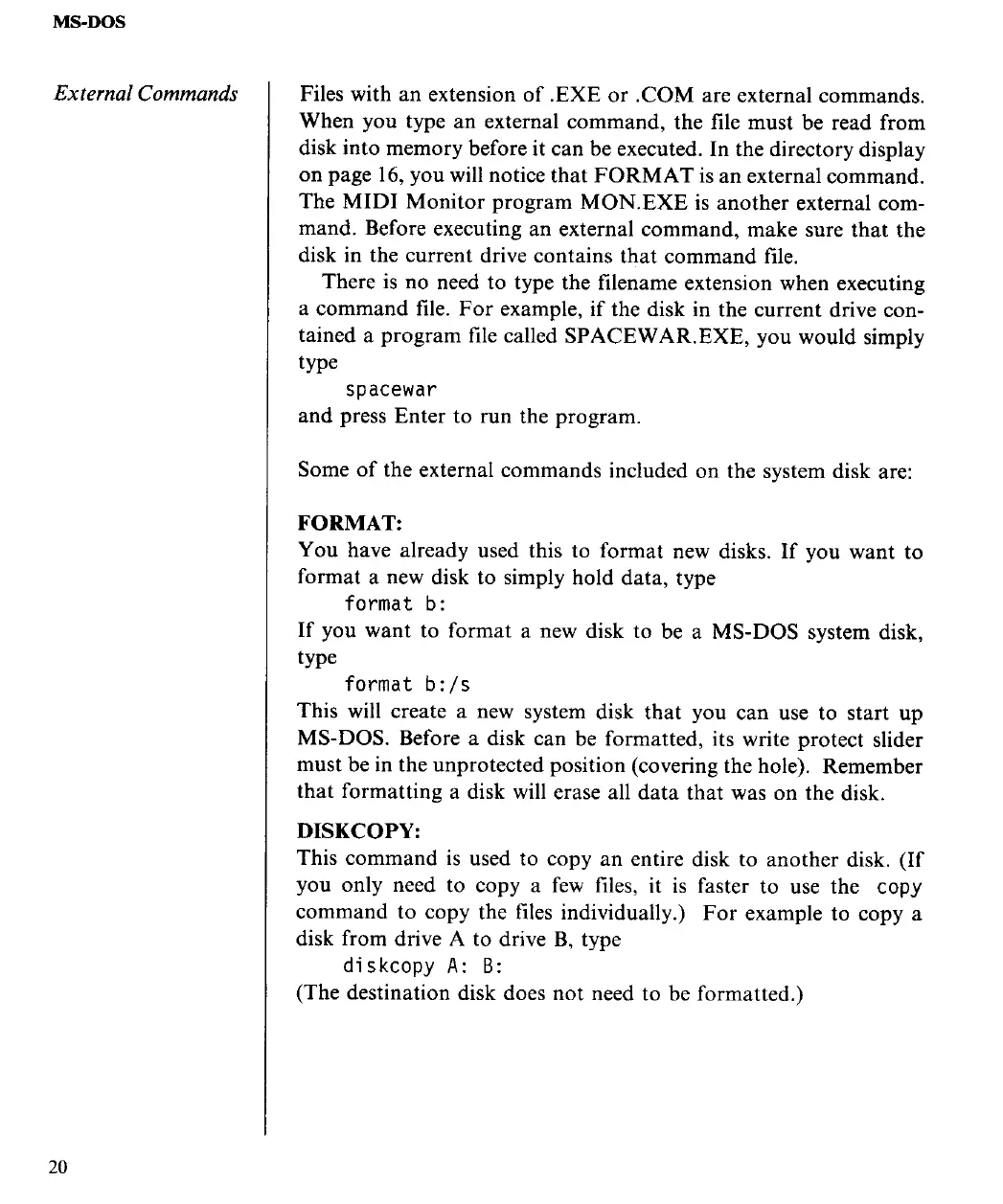 Yamaha C1 - MS-DOS External Commands; MS-DOS FORMAT Command; MS-DOS DISKCOPY Command