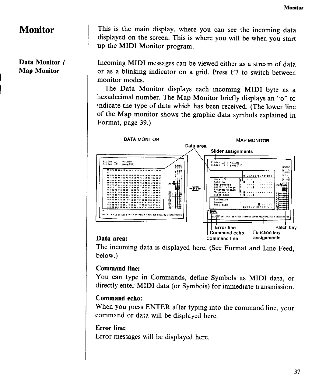 Yamaha C1 - Monitor Display Details; Monitor Display Data Area; Monitor Display Command Line; Monitor Display Command Echo