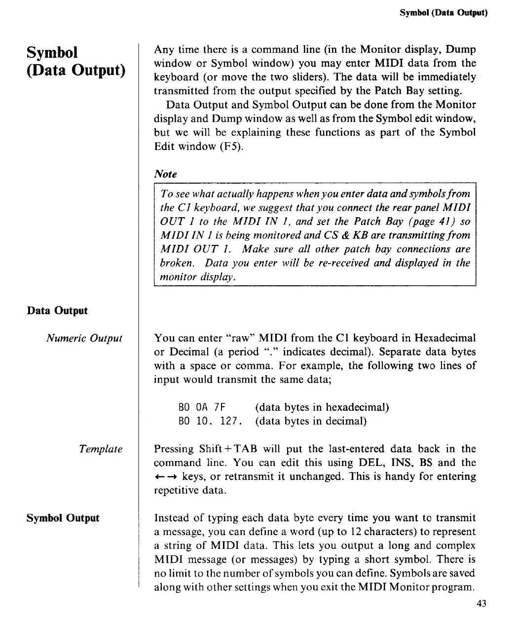 Yamaha C1 - Symbol and Data Output; Symbol Data Output Overview; Symbol Numeric Data Entry; Symbol Data Input Template