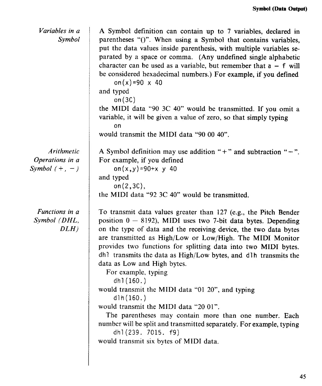 Yamaha C1 - Symbol Variables; Symbol Arithmetic Operations; Symbol Functions (DHL, DLH)