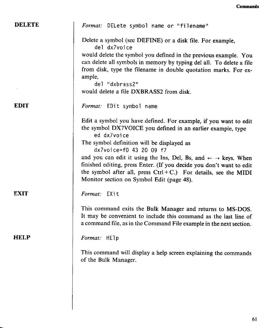 Yamaha C1 - Bulk Manager SAVE Command; Bulk Manager SORT Command; Bulk Manager SYMBOL Command; Bulk Manager TRANSMIT Command