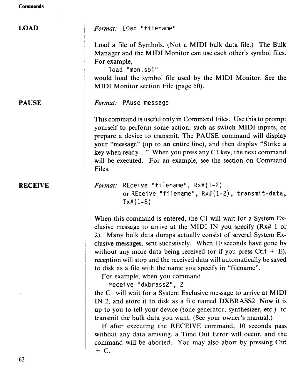 Yamaha C1 - Bulk Manager MS-DOS Commands