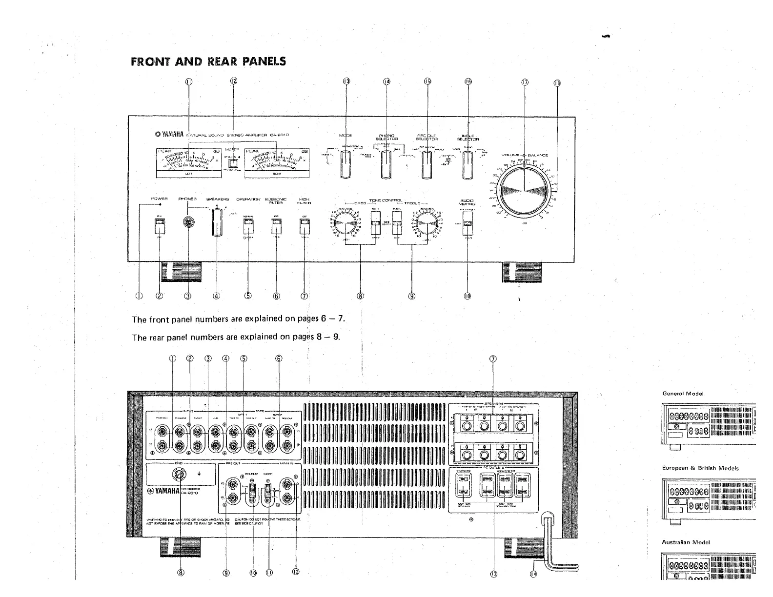 Yamaha CA-2010 - Front and Rear Panel Overview