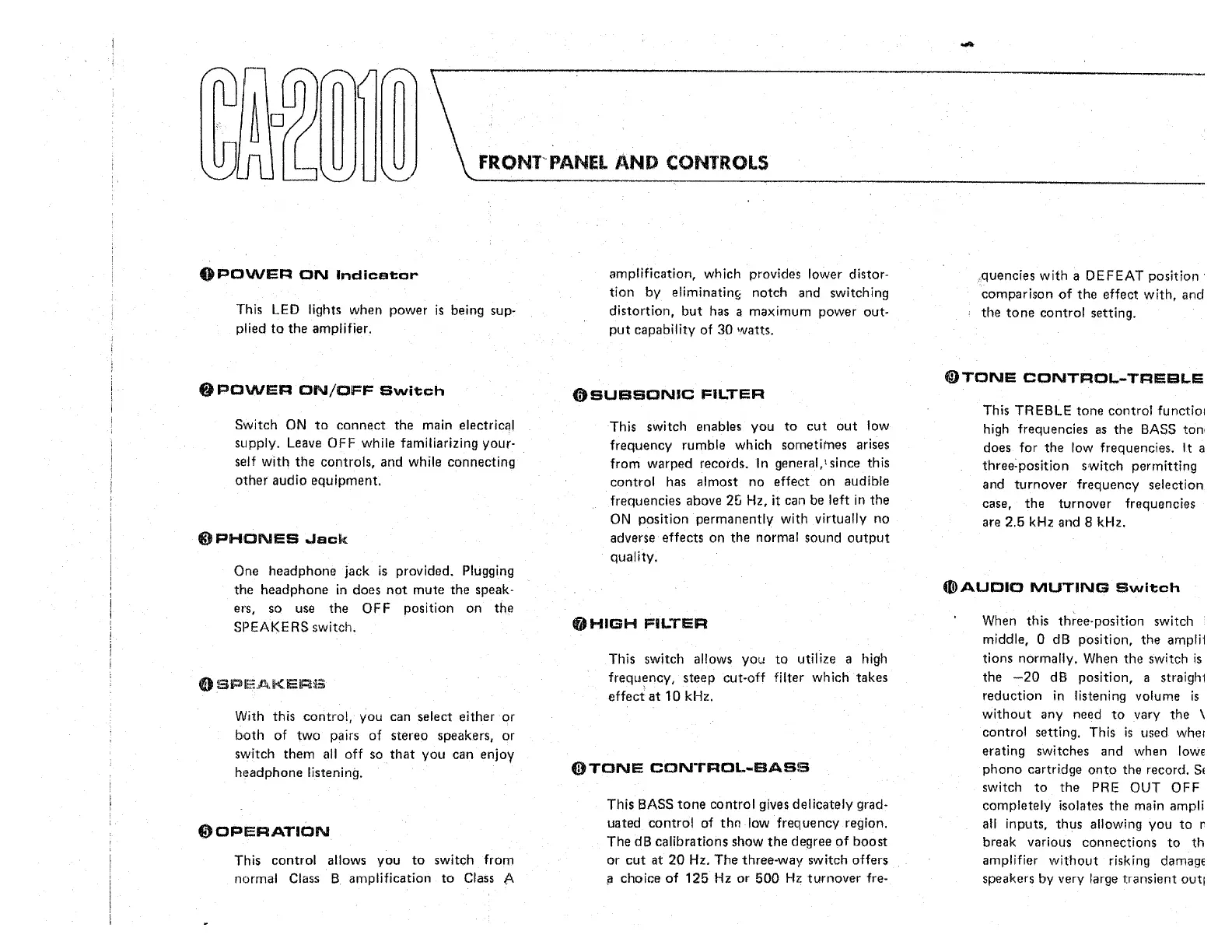 Yamaha CA-2010 - Front Panel Controls and Indicators