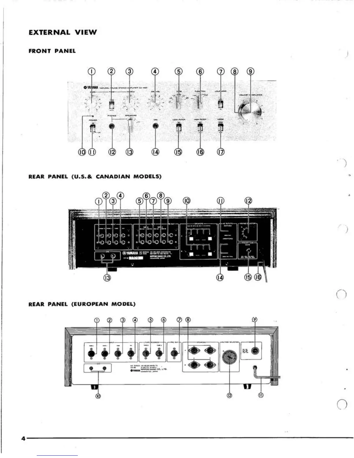 Yamaha CA-400 - External View; Front Panel; Rear Panel