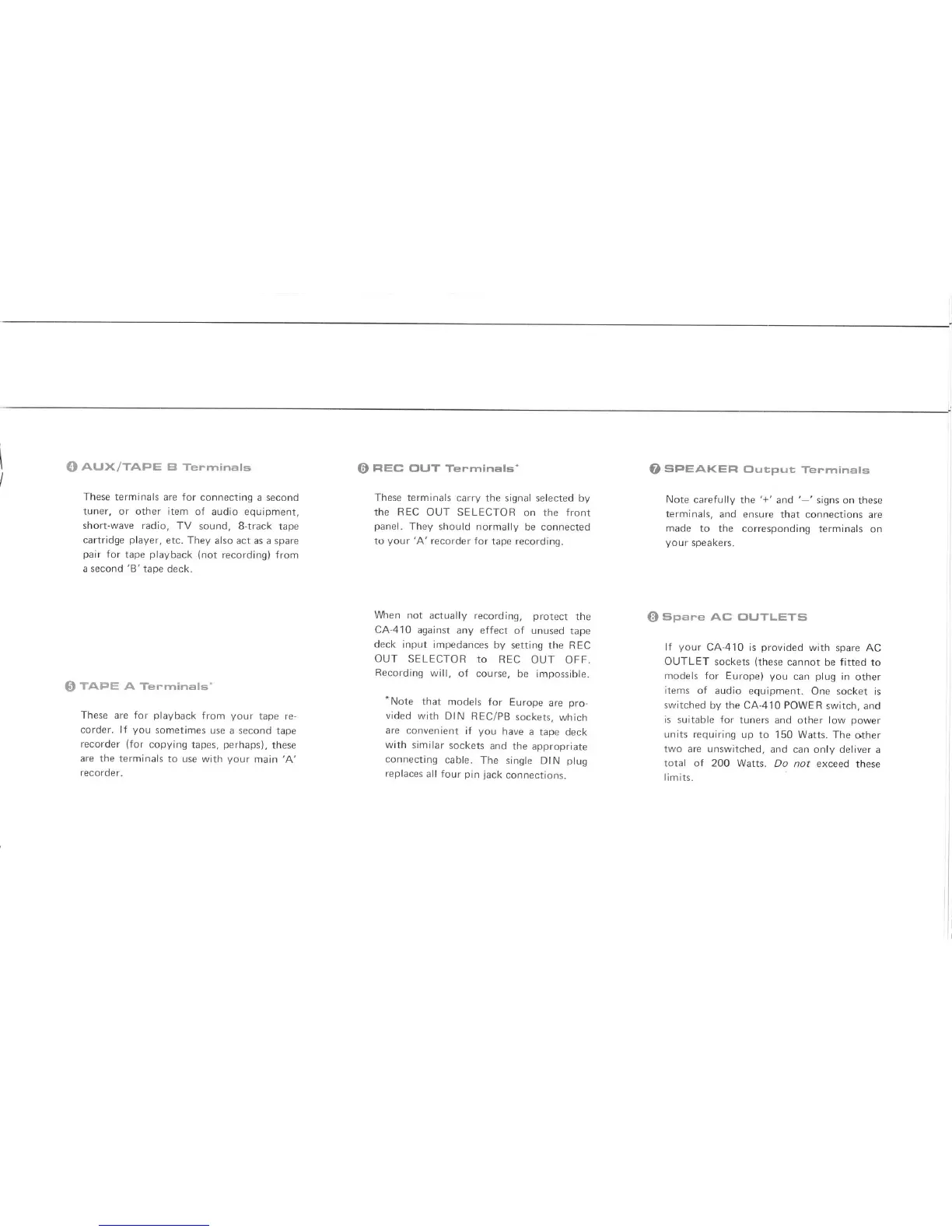 Yamaha ca-410 - Auxiliary, Tape, and Speaker Outputs; Spare AC Outlets