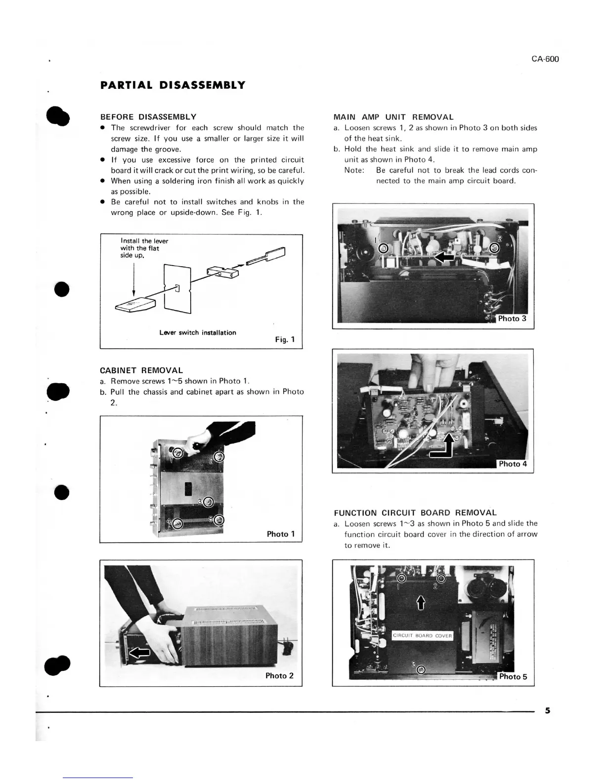 Yamaha CA-600 - Partial Disassembly; Disassembly Precautions; Unit and Board Removal
