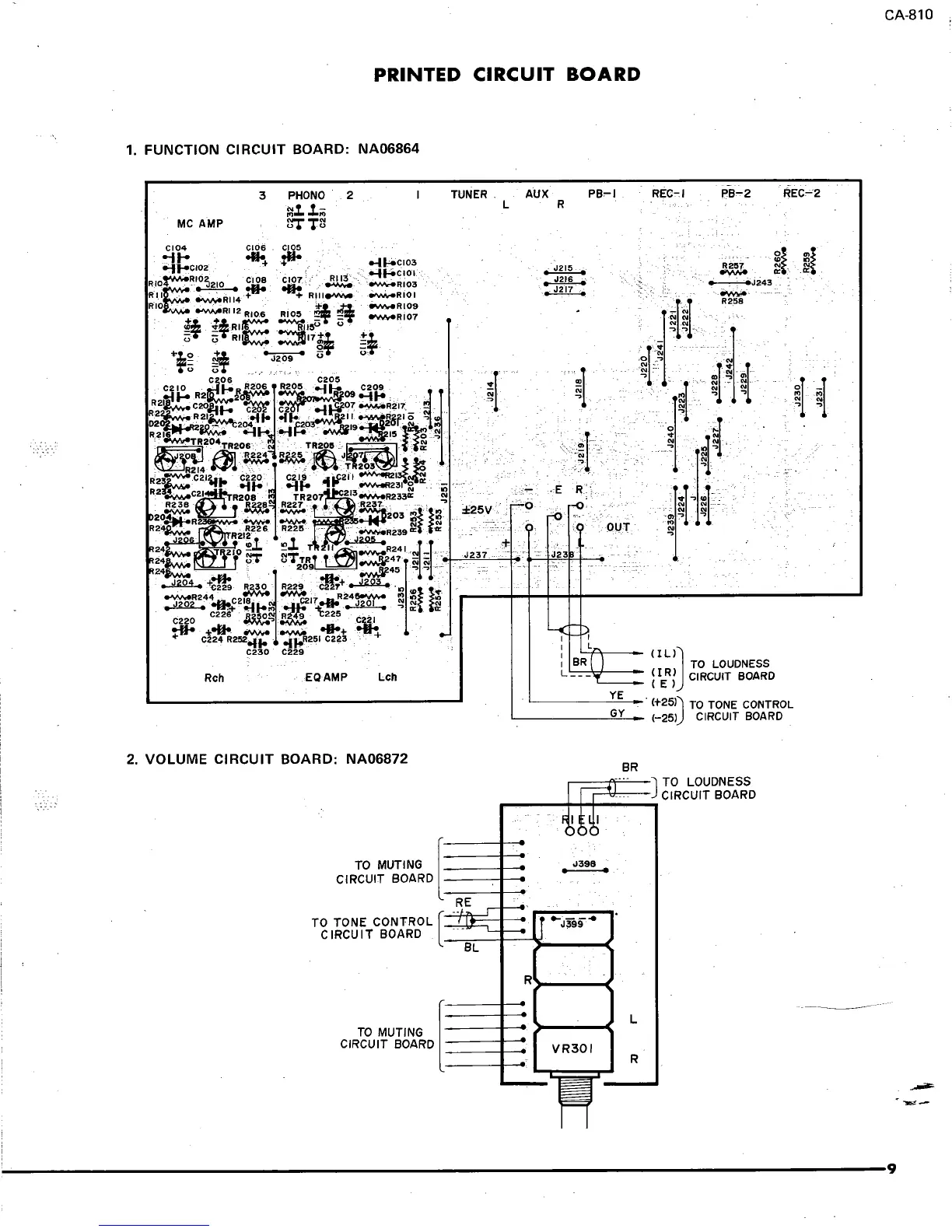 Yamaha CA-810 - Printed Circuit Board; Function Circuit Board: NA06864; Volume Circuit Board: NA06872