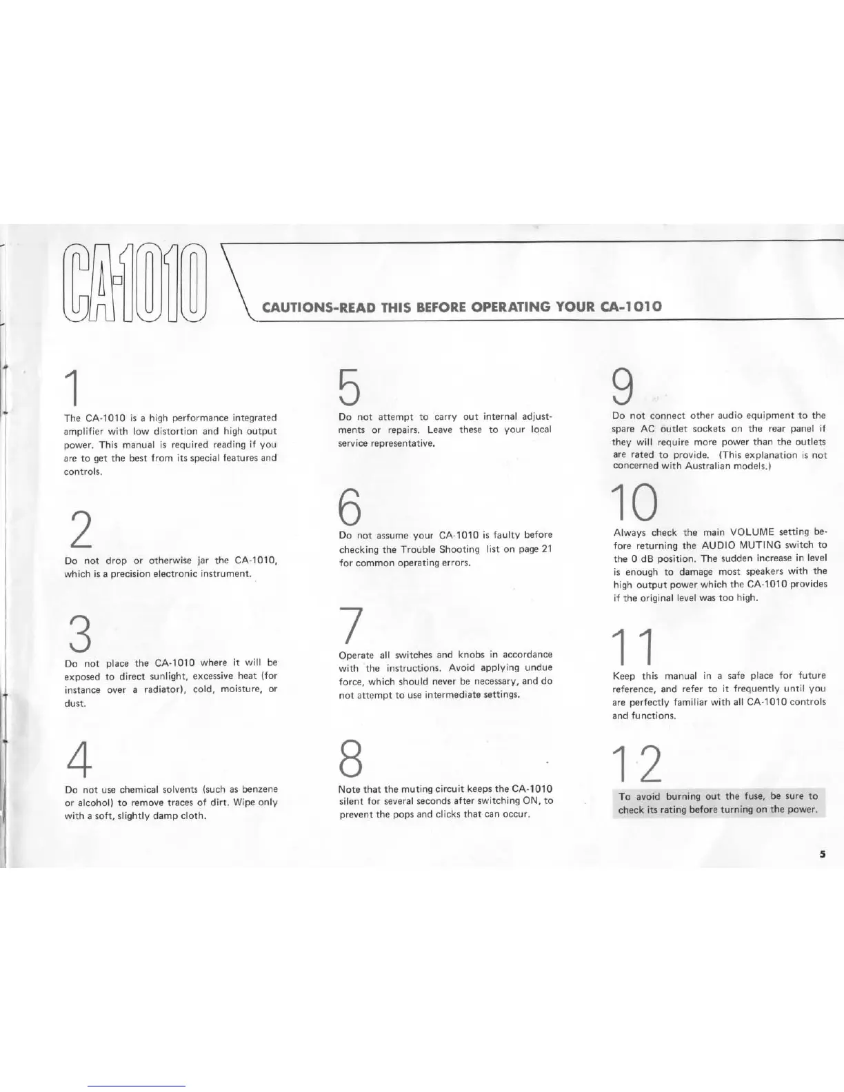 Yamaha CA1010 - Cautions: Before Operating Your CA-1010; Essential Operating Safety Guidelines