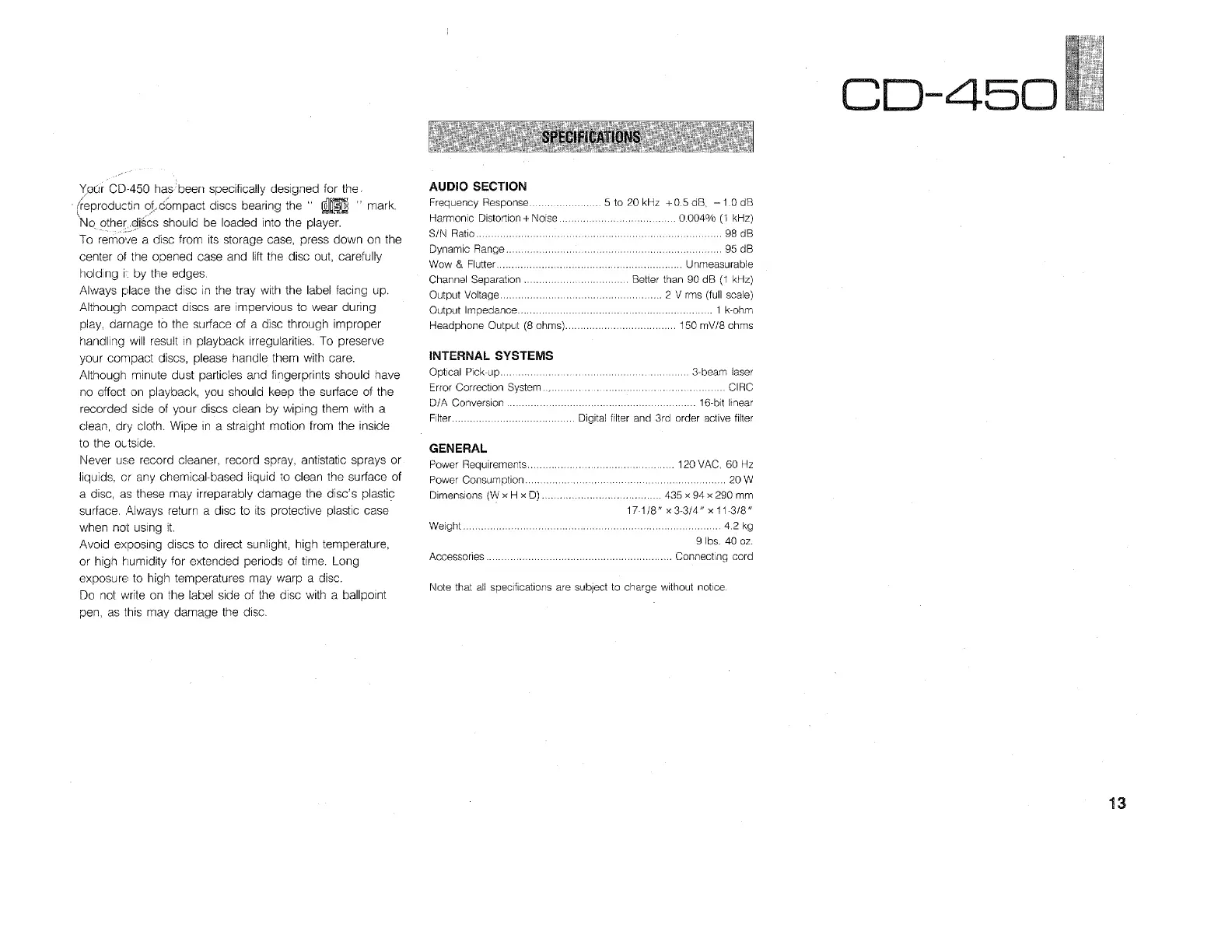 Yamaha CD-450 - Page 13