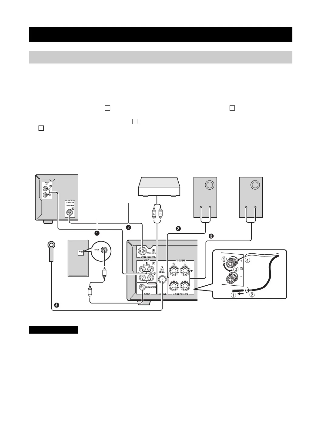 • No deje que los cables de altavoz pelados hagan contacto entre sí ni toquen otras partes metálicas del receptor. Esto podría dañar el