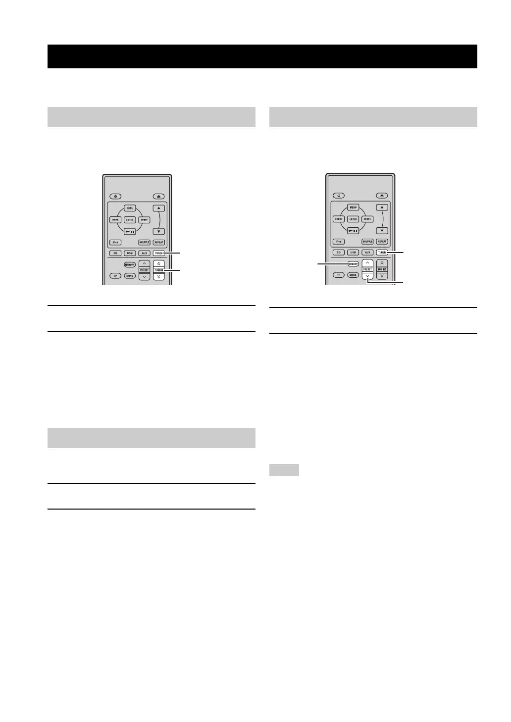 There are 2 tuning methods: automatic and manual. You can also use the automatic and manual preset tuning features to