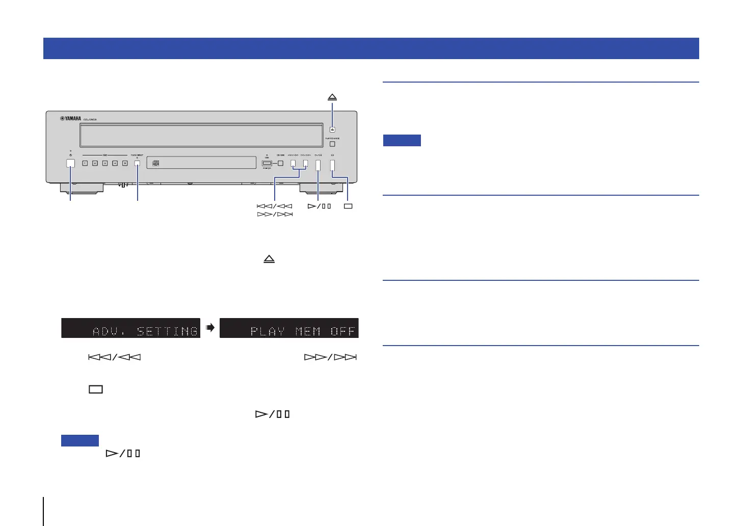 the unit enters Setting mode. You can set the Playback Mode Memory, Ready