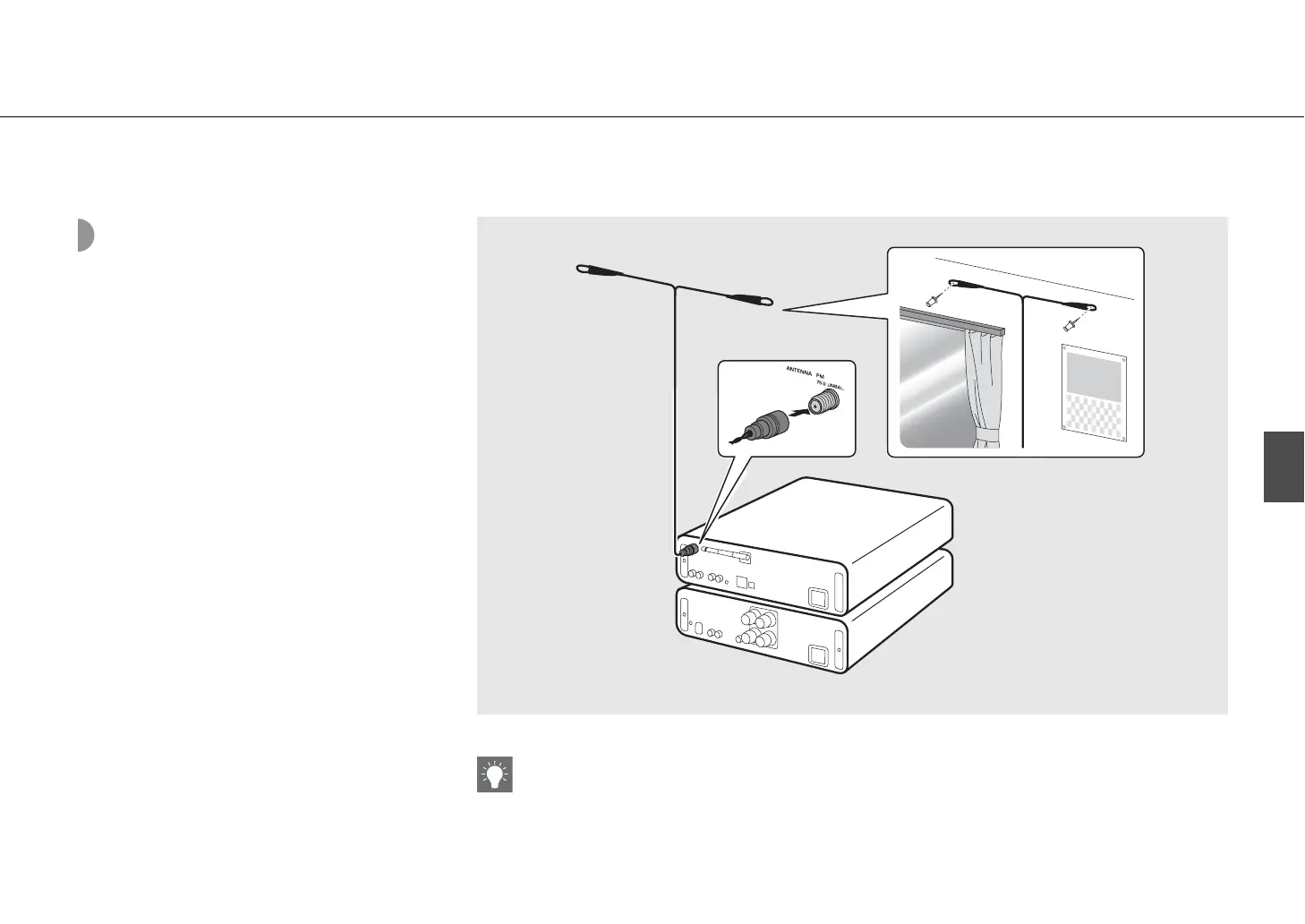 • Se la ricezione radio con l’antenna in dotazione non è soddisfacente, un’antenna esterna disponibile in commercio