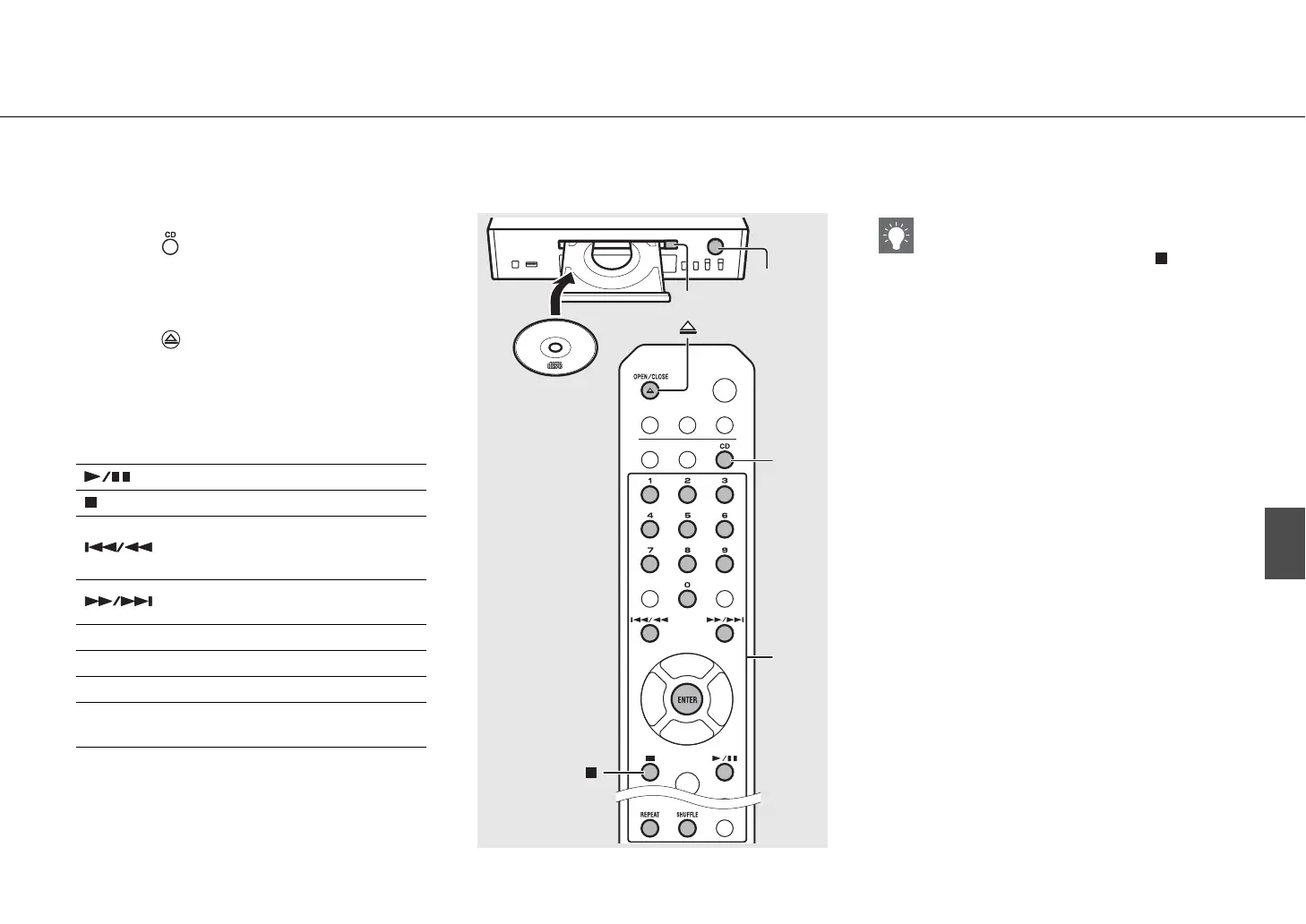 • Si apaga la unidad con el CD seleccionado como