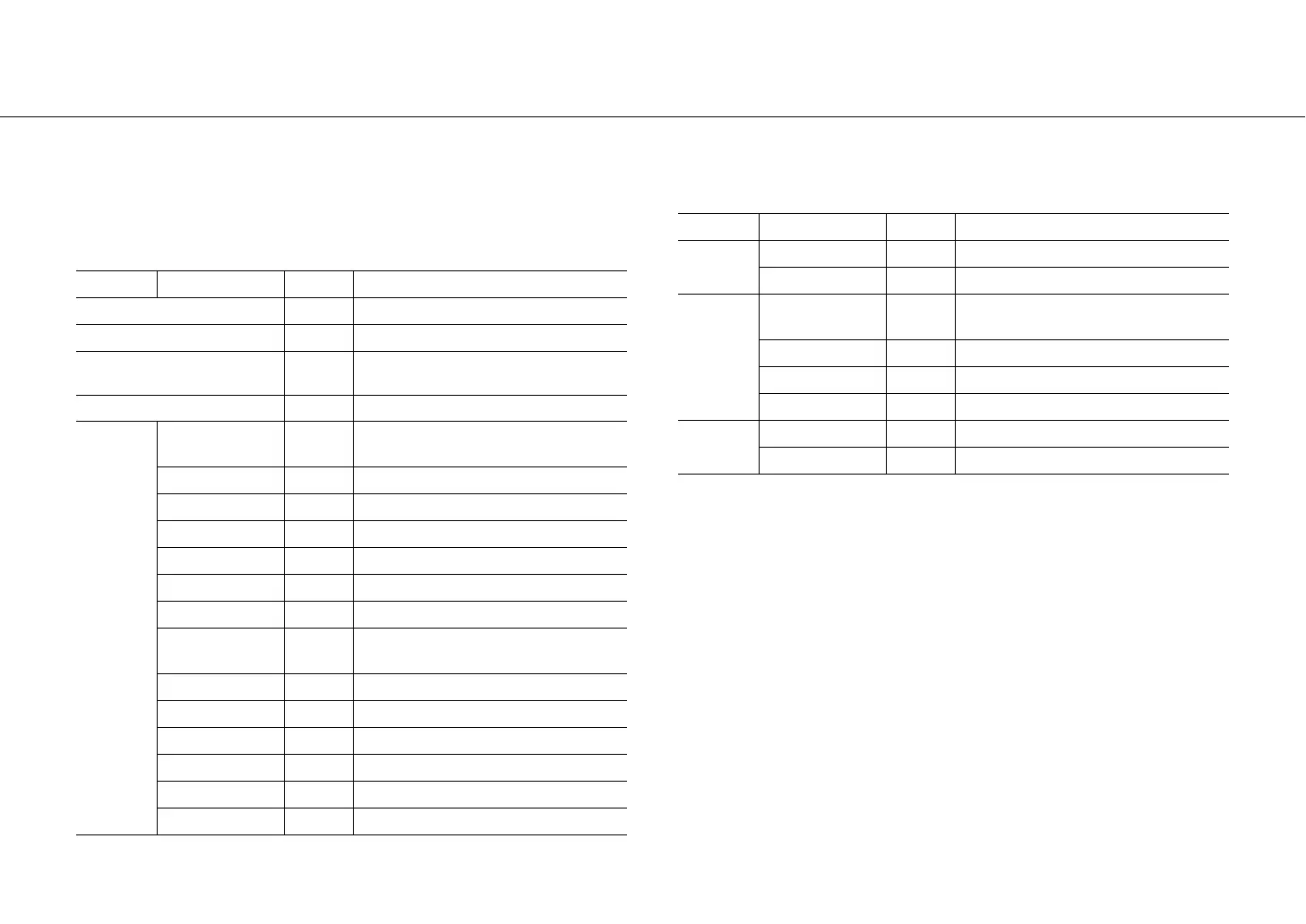 Menu Sub menu Default Function