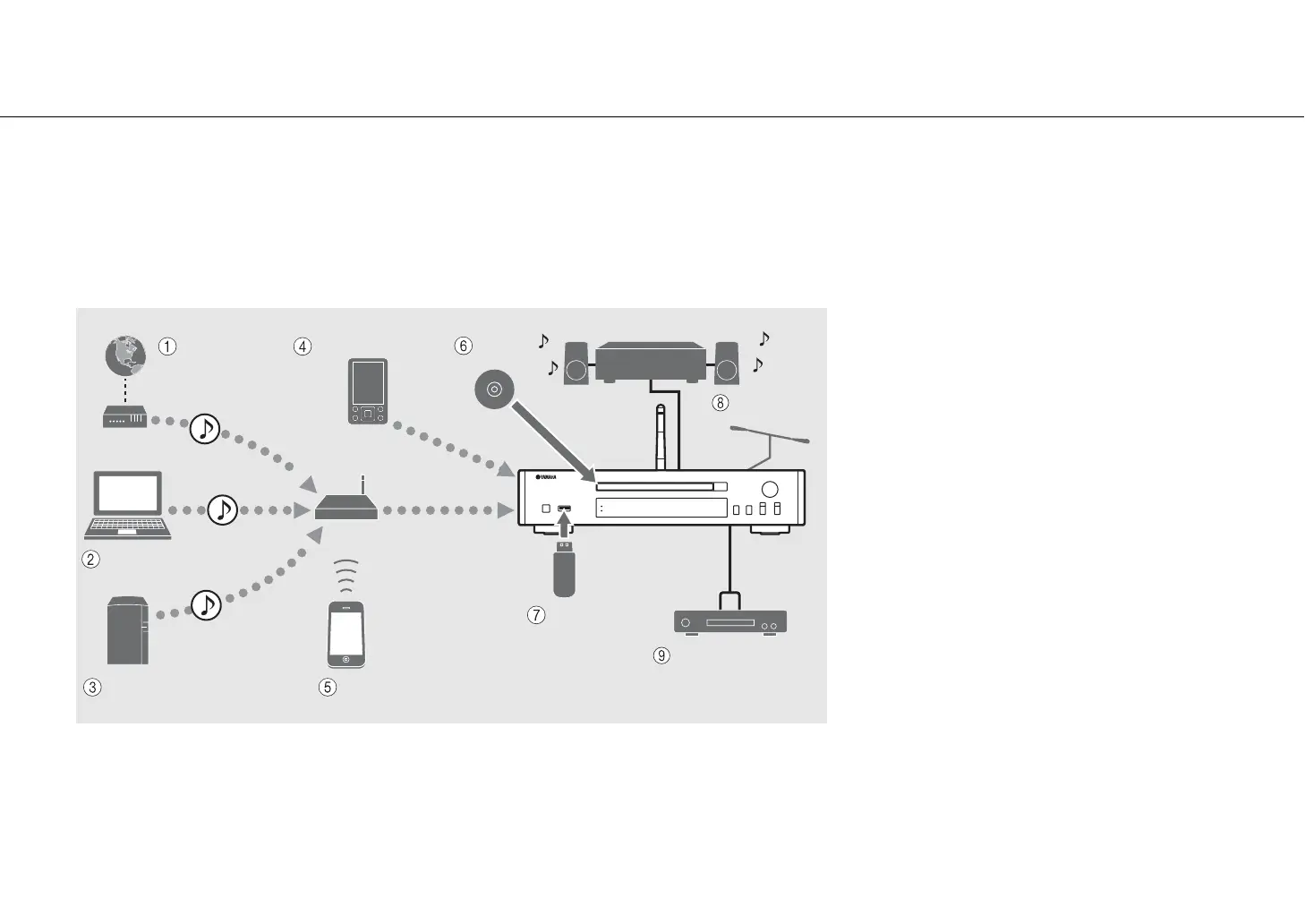 • Cet appareil est un lecteur de CD réseau vous permettant d’écouter des fichiers musicaux stockés sur votre serveur multimédia (PC ou NAS) et des dispositifs USB,