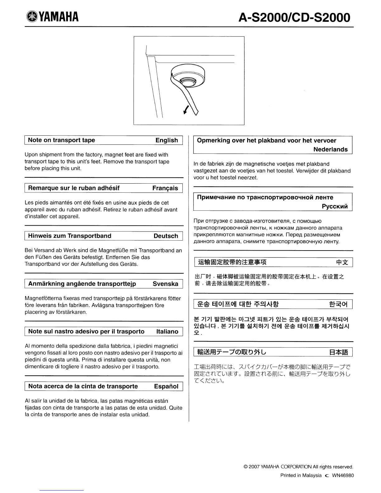 transport tape to this unit's feet. Remove the transport tape