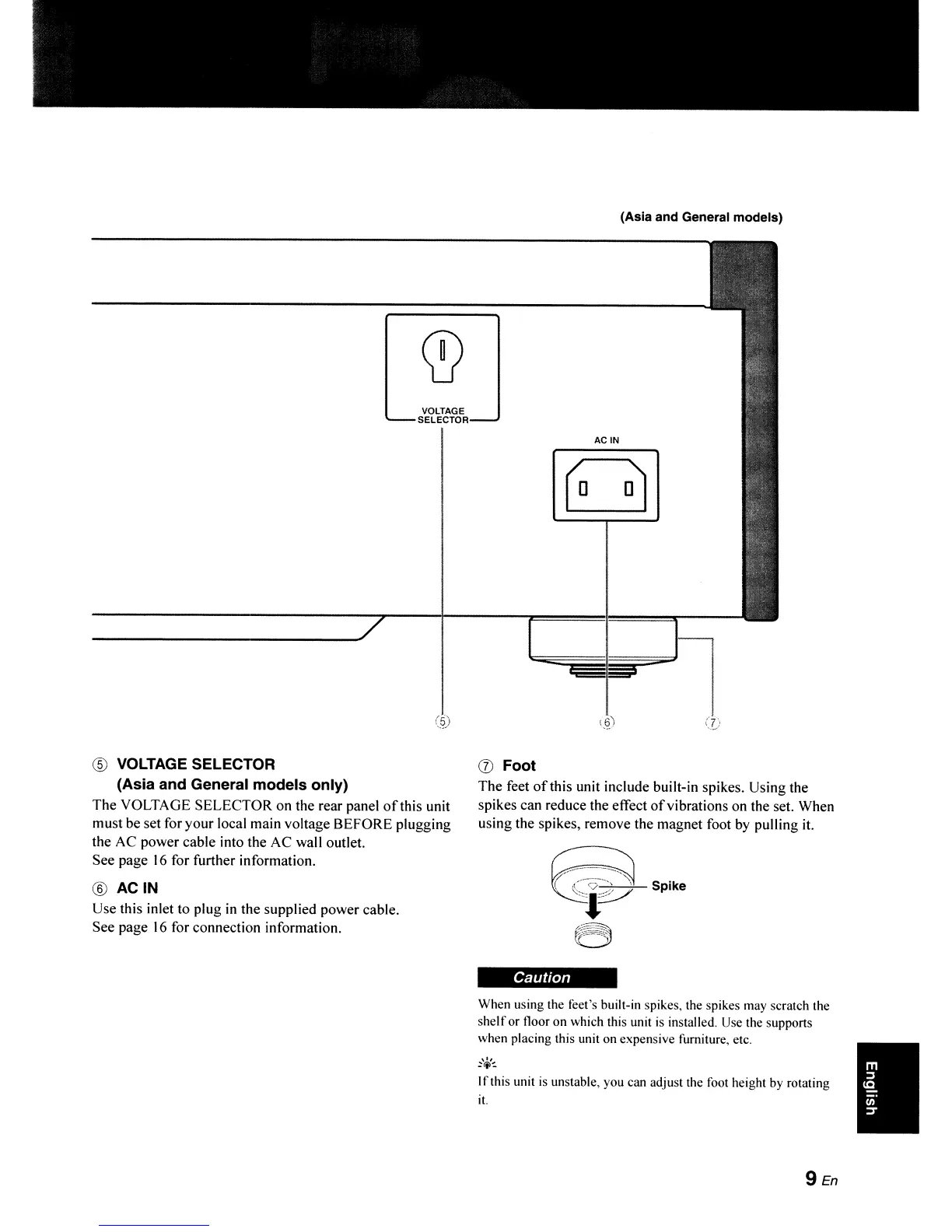 The VOLTAGE SELECTOR on the rear panel