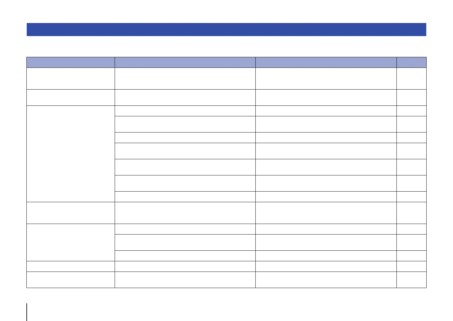 Aucun son La connexion de l’appareil à l’amplificateur est incorrecte. Vérifiez la connexion à l’amplificateur. 32