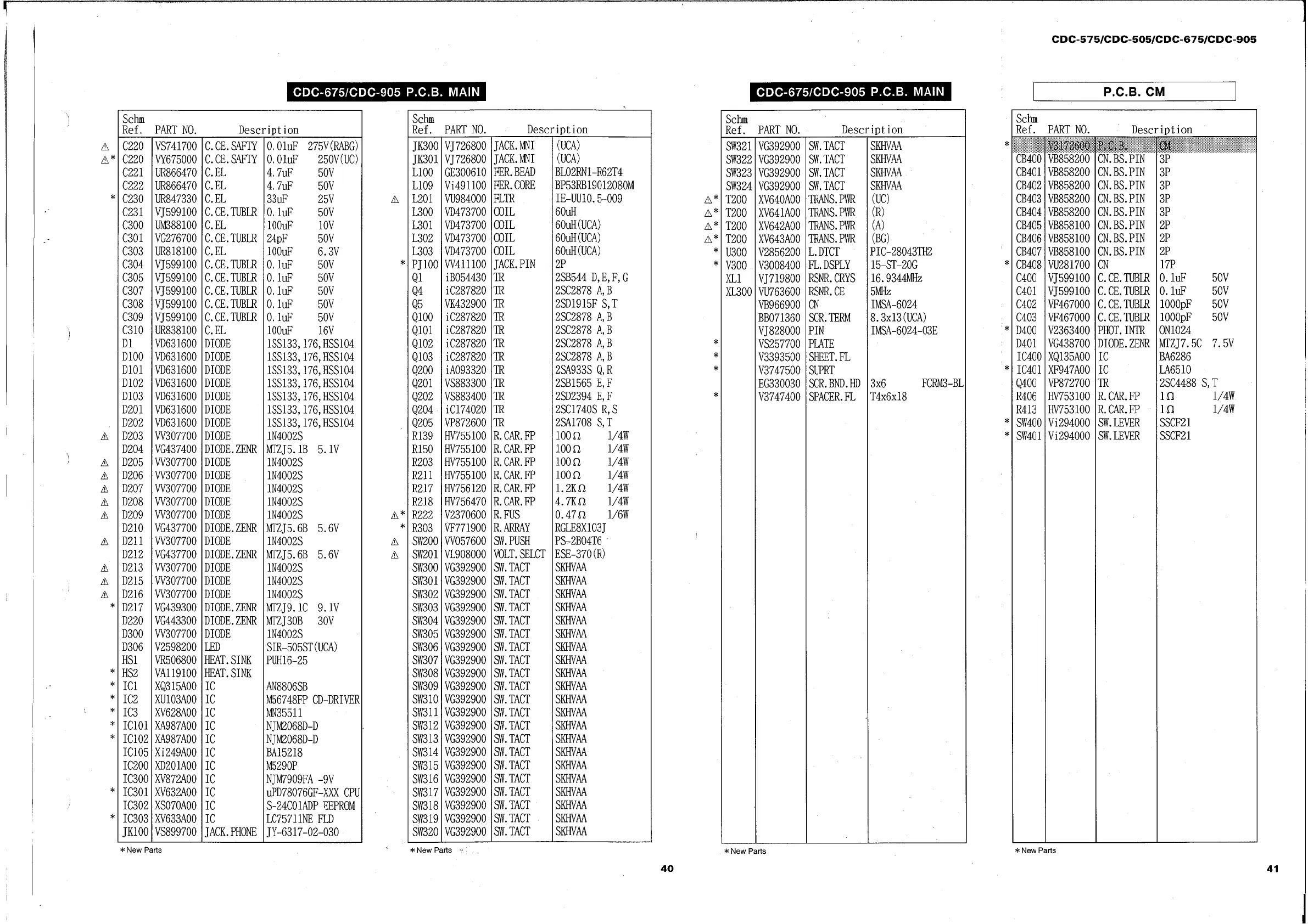 Yamaha CDC-675 - Parts List (CDC-675;CDC-905) (Continued); Main and CM PCB Components