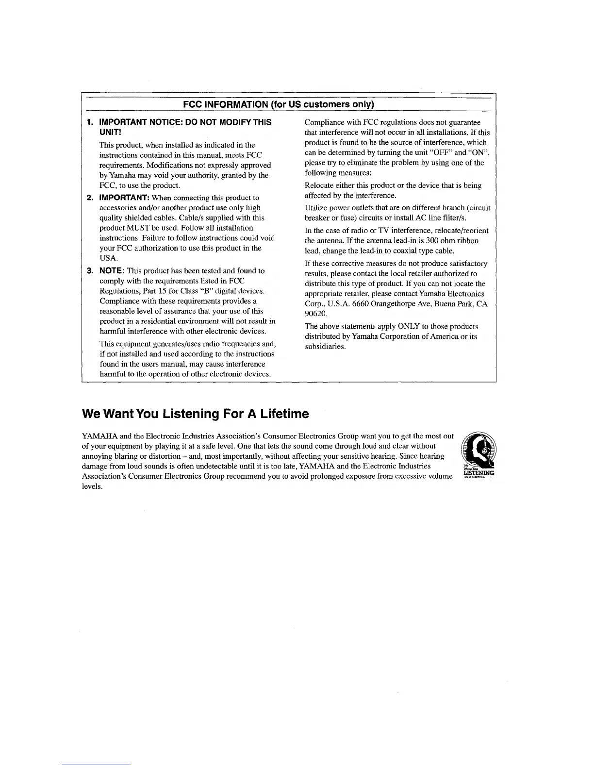 damage from loud sounds is often undetectable until it is too late, YAMAHA and the Electronic Industries