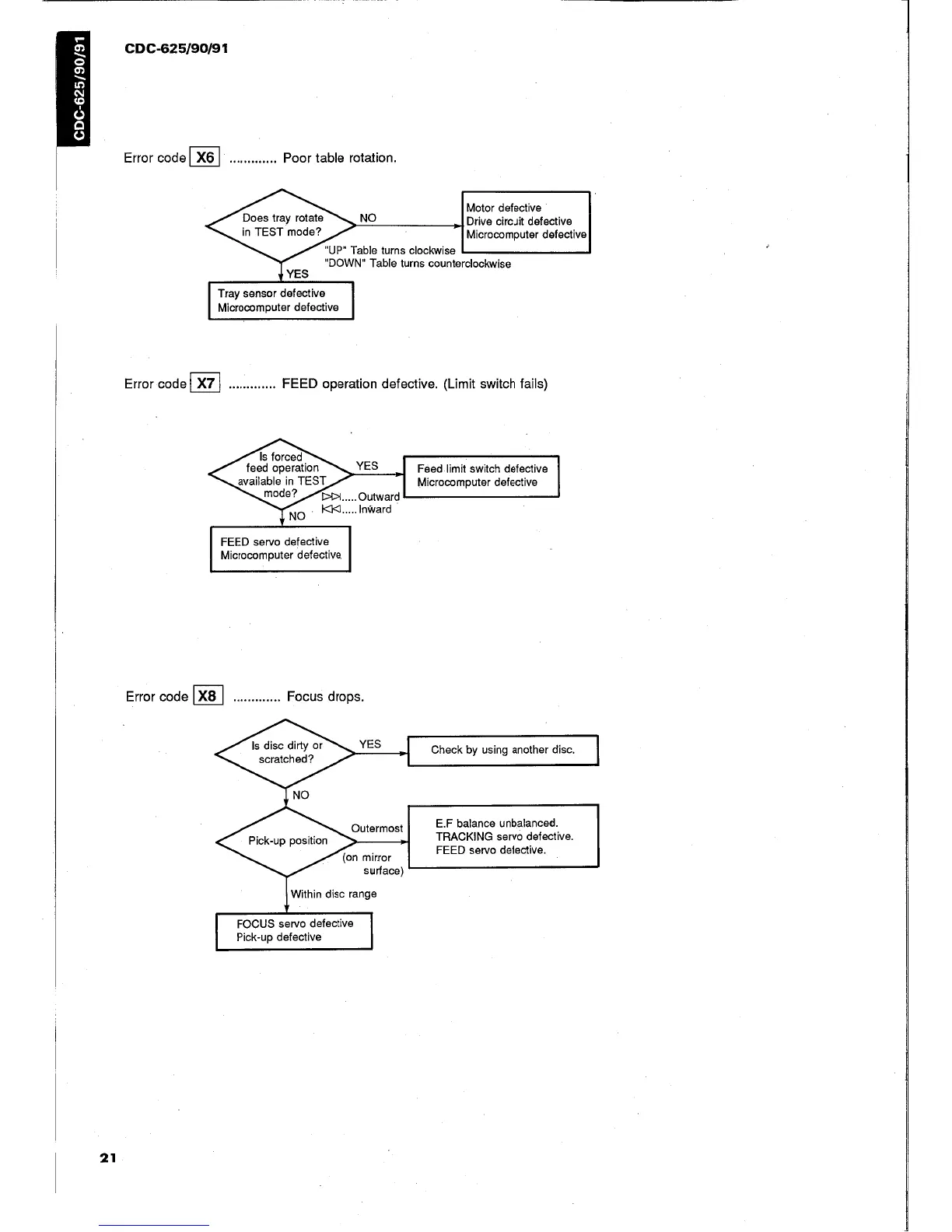 Yamaha CDC-90 - Error Message (continued); Troubleshooting Error Code X6; Troubleshooting Error Code X7; Troubleshooting Error Code X8