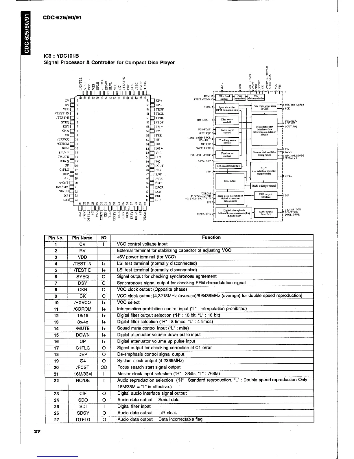 Yamaha CDC-90 - IC Data (continued); IC6 Signal Processor & Controller Details