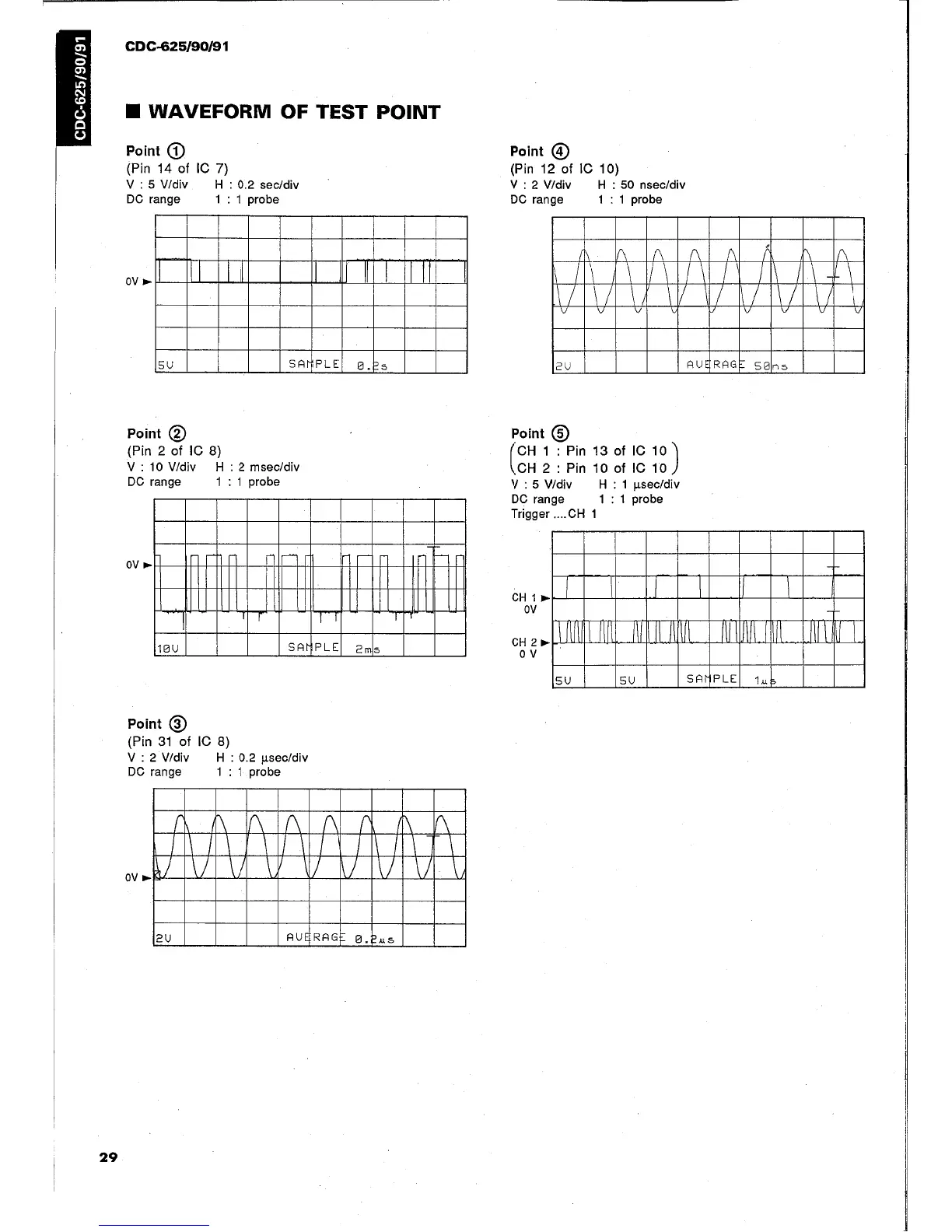Yamaha CDC-90 - Waveform of Test Point; Test Point 1 Waveform; Test Point 2 Waveform; Test Point 3 Waveform