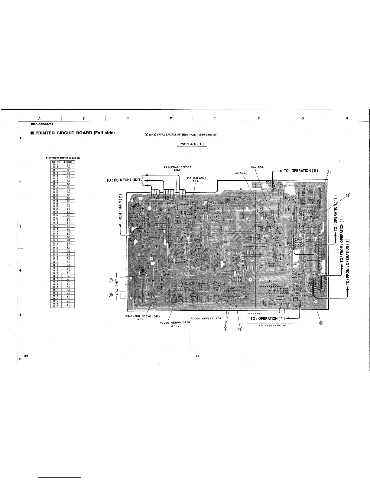 Yamaha CDC-90 - Printed Circuit Board (Foil side); Semiconductor Location (Foil Side)