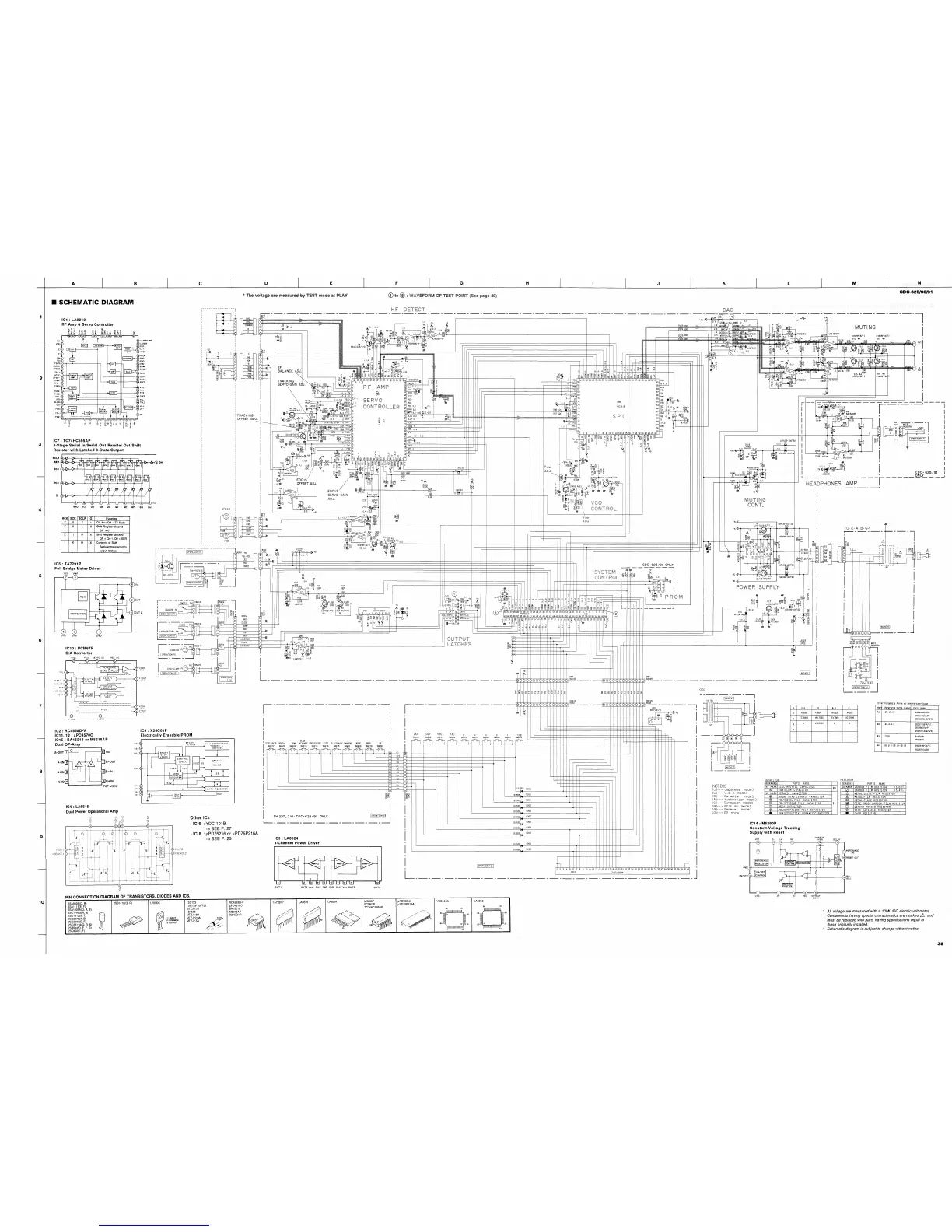 Yamaha CDC-90 - Schematic Diagram; IC1 LA9210 RF Amp & Servo Controller Schematic; IC6 YDC101 B Signal Processor & Controller Schematic; IC8 System Controller Schematic