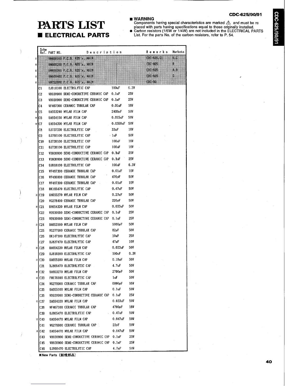 Yamaha CDC-90 - Parts List Electrical Parts; Capacitors (C1-C46)