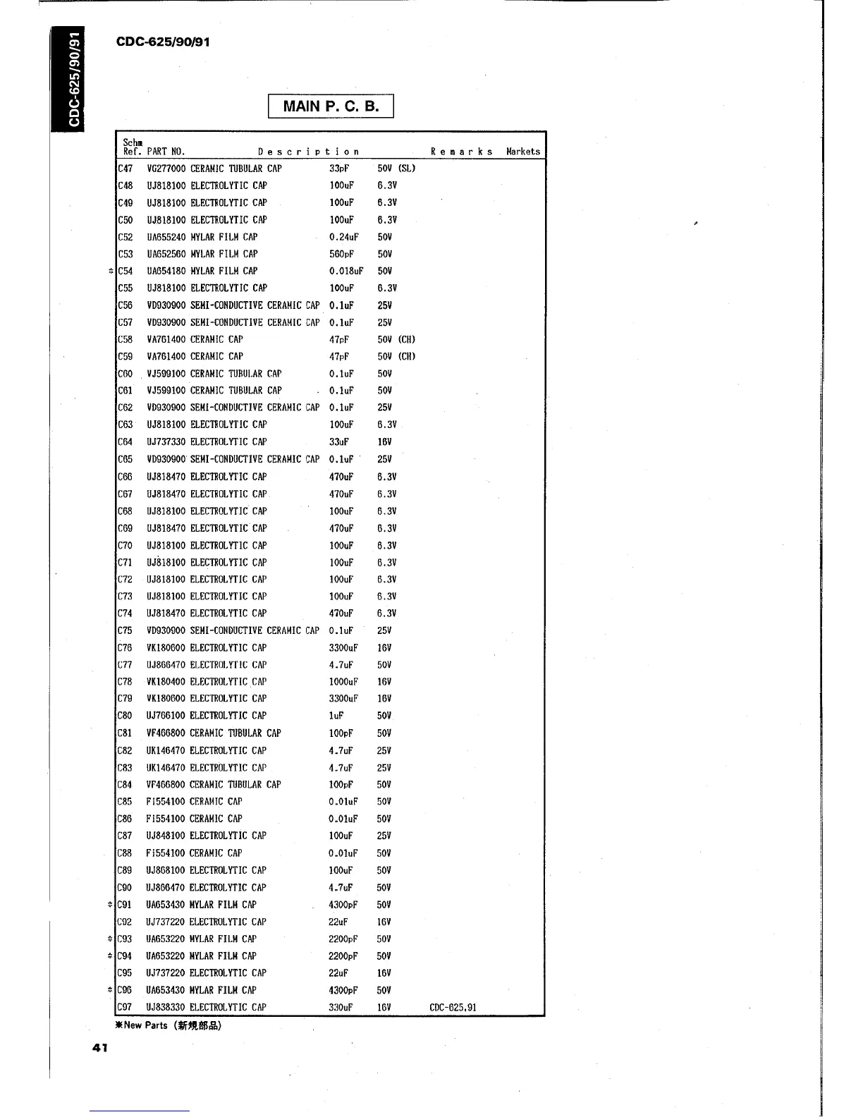Yamaha CDC-90 - Parts List Electrical Parts (continued); Capacitors (C47-C97)