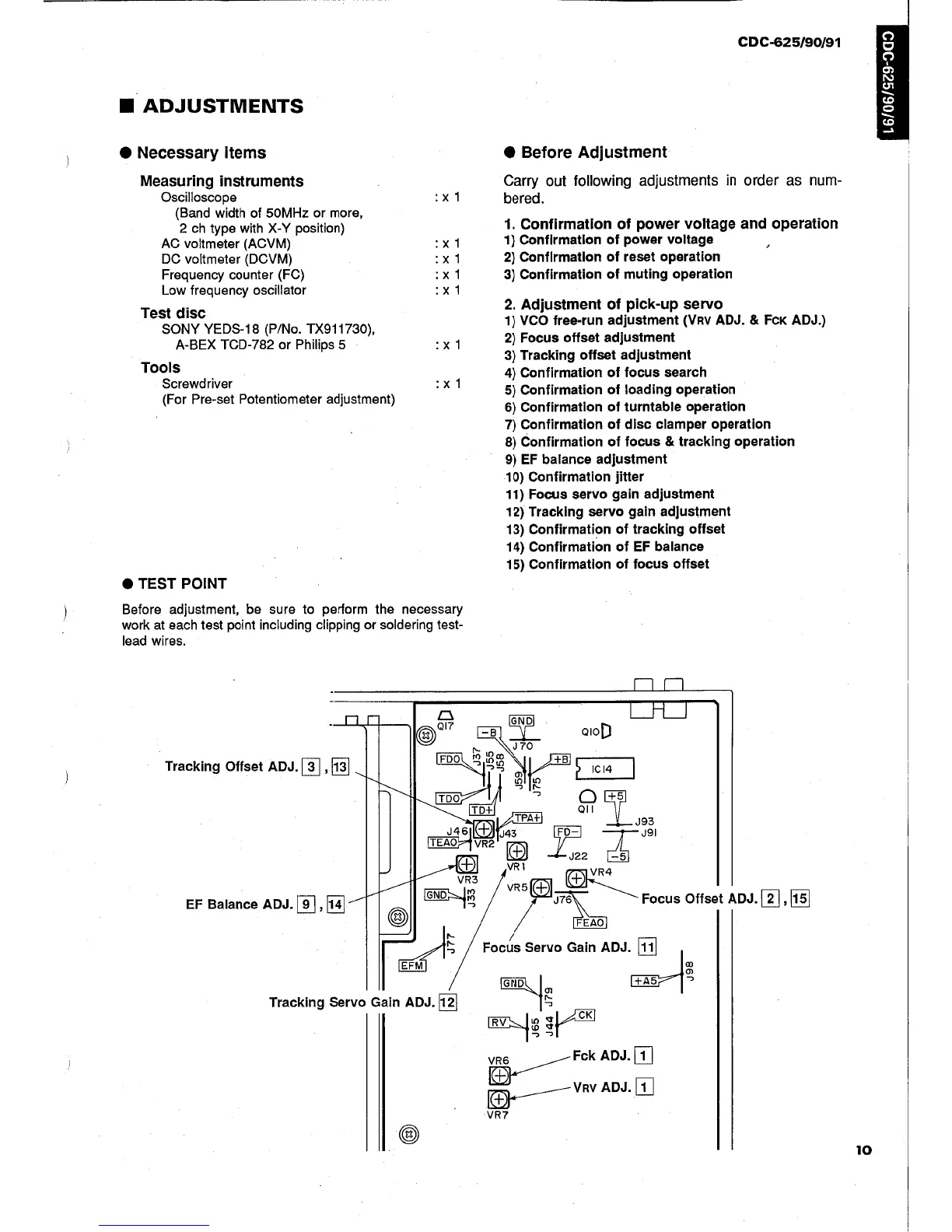 Yamaha CDC-90 - Adjustments; Necessary Items for Adjustment; Tools for Adjustment; Test Point Preparation